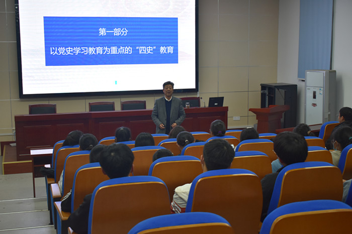 朱绍友围绕以党史学习教育为重点的“四史”教育、深刻领会习近平总书记“七一”重要讲话精神及肩负起实现中华民族伟大复兴的历史使命等3个方面进行深入阐释与解读,并就如何正确规划大学生活、树立人生目标、明确职业发展路径等方面对新生作重要指引。他教育引导新生要保持坚定的政治信仰,坚定共产主义远大理想和中国特色社会主义共同理想,注重加强政治理论学习和“四史”学习,特别是学习习近平新时代中国特色社会主义思想以及党的创新理论,掌握马克思主义基本原理和基础方法,提升政治理论素养;更要珍惜光阴、不负韶华,了解并热爱所学专业,勤奋学习,勇于实践,敢于担当,在书本学习中掌握宽博扎实的专业基础知识,在实践中积累社会知识和人生经验,淬炼过硬的意志和品格,争做“六有”大学生,真正做到知史爱党、知史爱国、知史担责,以实际行动为实现中华民族伟大复兴贡献力量。