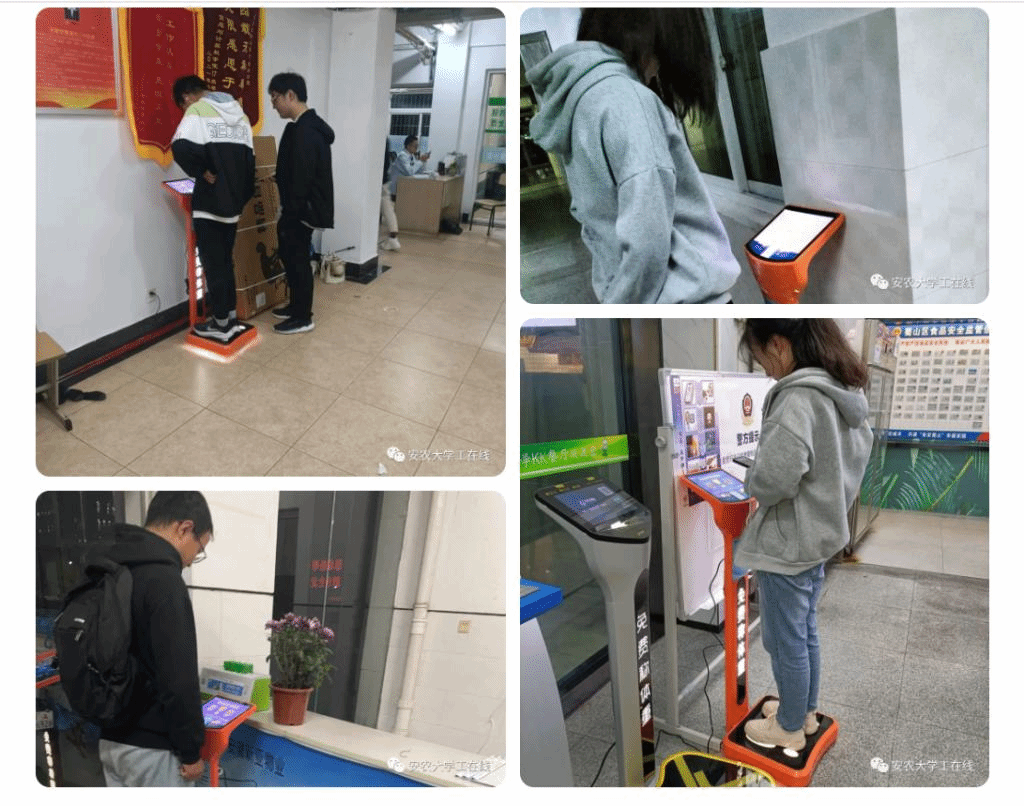 2020级农业机械化及其自动化专业的刘瑞强说:“这个电子秤很方便,在各大宿舍楼,教学楼,食堂等都有它的身影,实用便捷,站上去等待几秒体重结果便会出来,输入身高还能看到自己的体脂率以及与上次称重时的体重变化,能够清楚掌握自己的体重动态情况,也能够让人增强锻炼的意识”。(卢伟 通讯员:杨金丹)