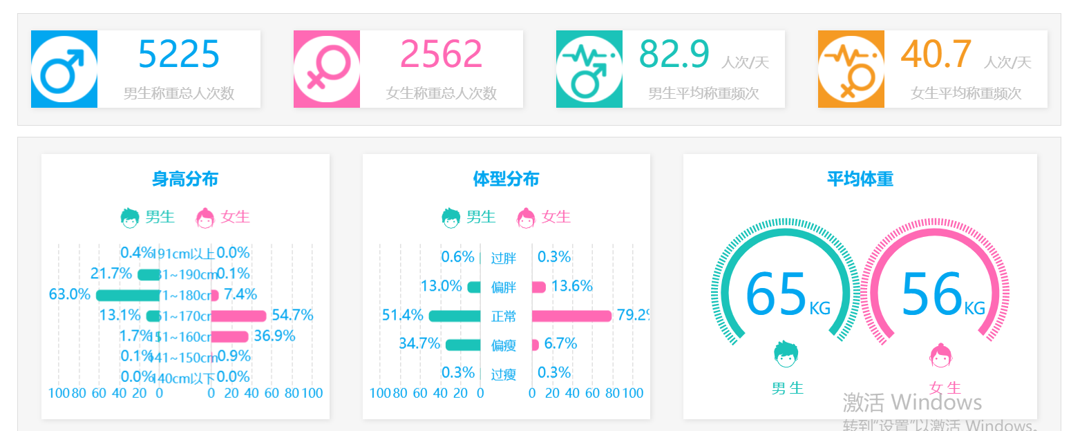 在调研中发现,学校师生积极参加体育锻炼,关注自身体质健康,关心身体重量变化,希望学校在校园内有方便称体重和记录身体重量的系统或平台。学工部(处)根据师生需求,积极寻找解决问题的办法,于10月中旬够买了2台电子秤在勤学楼和校内4栋学生宿舍试用,并通过易班平台设置查询和监测功能,试用期间,深受师生喜爱。10月底,学工部(处)又购置40多台,分别部署在在全校学生宿舍、食堂和各学院办公楼内,方便全校师生使用。目前仅一周时间,已使用超7600人次。