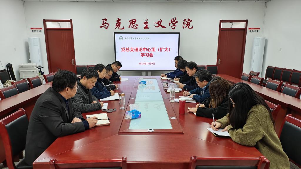 本网讯11月9日下午,马克思主义学院在院会议室召开党总支理论学习中心组(扩大)学习会,会议由院党总支书记、院长黄洪雷主持。院党总支副书记、副院长袁修雨,院党总支委员、各支部书记、各教研部、中心主任、办公室成员等参加会议。