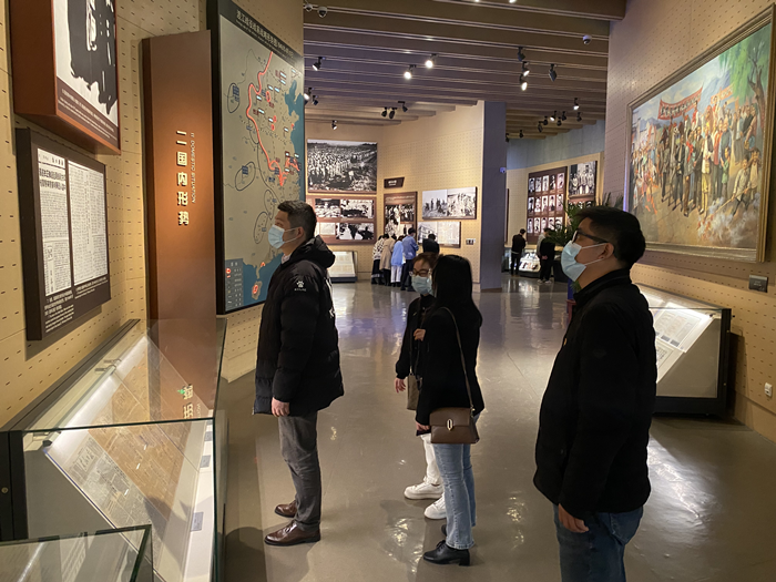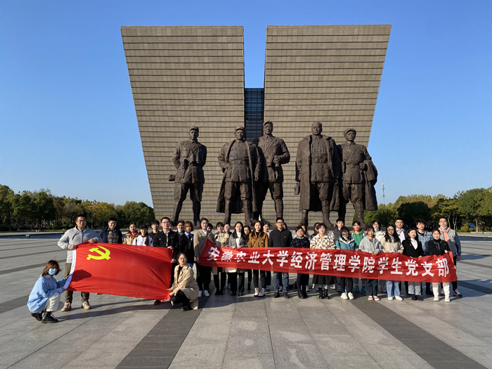 本网讯为深入推进党史学习教育,贯彻落实习近平总书记关于崇尚英雄、缅怀英烈的重要论述,重温峥嵘岁月,传承红色基因,11月10日下午,经济管理学院教师党员带领学生第二、三、四、七以及研究生第四党支部赴渡江战役纪念馆开展党史学习教育实践活动。