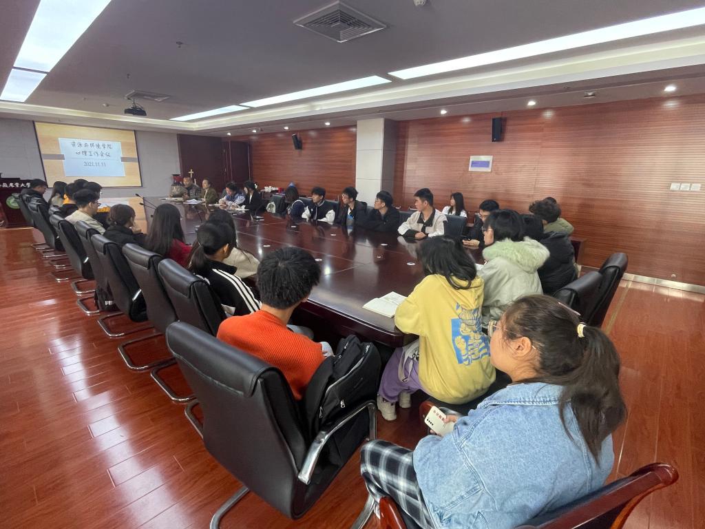 本网讯 为进一步提高大学生心理健康教育服务水平,11月11日中午,资源与环境学院在中西部大楼510会议室召开心理工作会议,学院党委副书记、纪委书记、副院长姚洪章出席会议,各班级心理委员参加。会议由学院心理工作站站长黄伟丽主持。