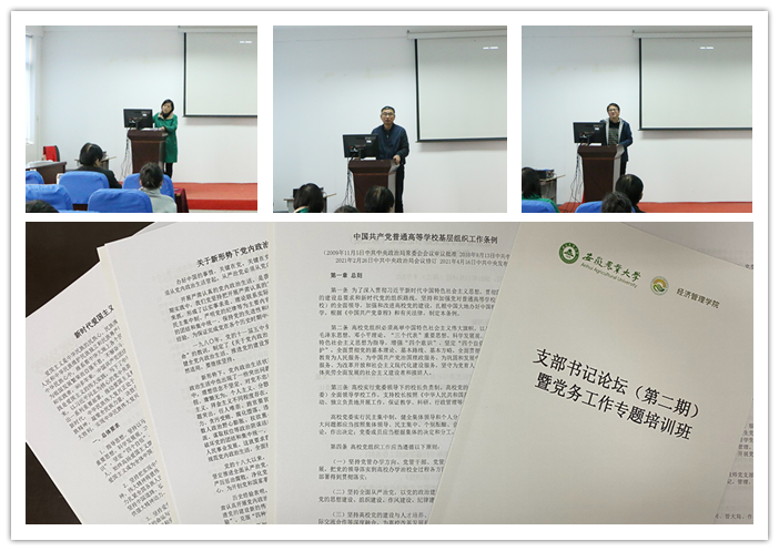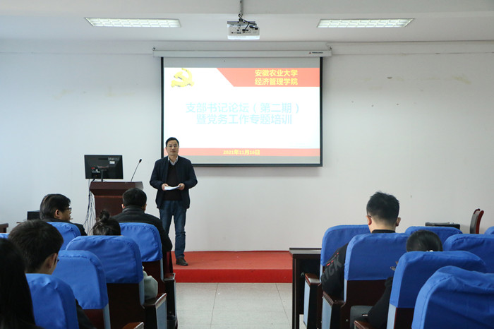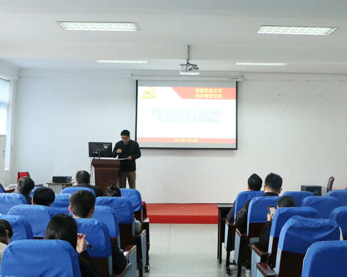本网讯11月16日下午,经济管理学院在经管楼321会议室召开支部书记论坛(第二期)暨党务工作专题培训会,邀请了茶与食品科技学院党委书记唐红萍作题为“强基固本抓党建,凝心聚力促发展”的辅导报告,院党委委员、党支部书记、支部委员参加了培训。会议由院党委副书记、纪委书记、副院长吴国卿主持。