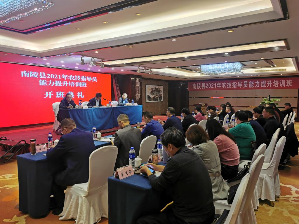 本网讯11月2日下午,由南陵县农业农村局主办,我校继续教育学院和资源与环境学院共同承办的2021年南陵县基层农技人员能力提升培训班顺利开班。继续教育学院院长胡启涛,南陵县农业广播电视学校校长王峻枫等出席开班式。开班式由我校资源与环境学院党委副书记、副院长、纪委书记姚洪章主持。