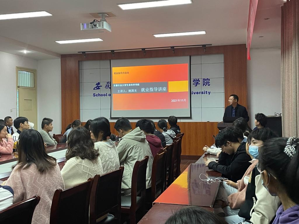 本网讯 为更好的开展大学生就业指导教育和实践活动,发挥优秀校友的榜样作用,引导和激励在校生志存高远、奋发成才,11月18日下午,生命科学学院在学院会议室举办了优秀校友报告会暨就业指导讲座,2018级学生代表50余人参加会议。会议由学院党委副书记闫大玮主持。