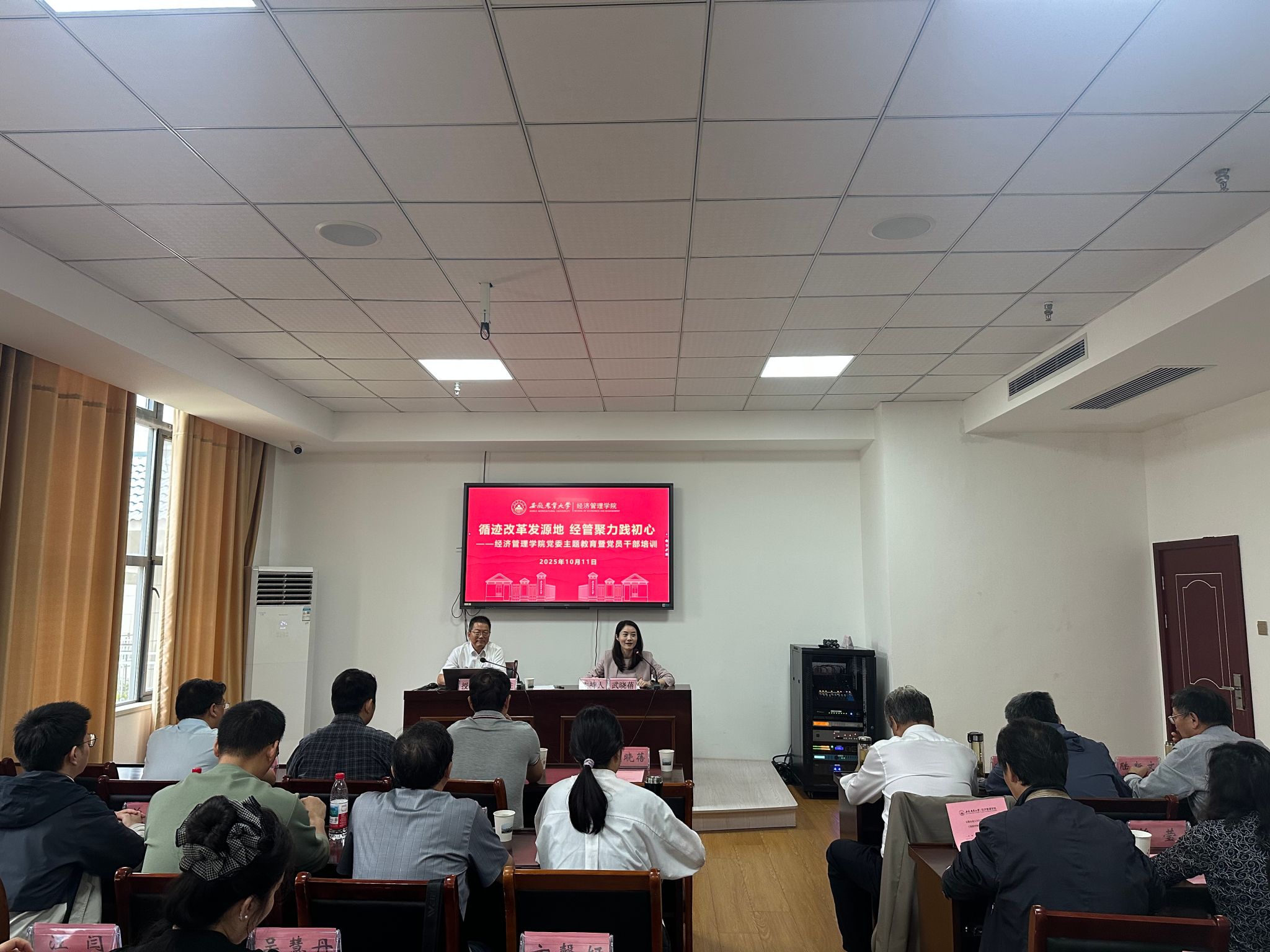 本网讯 为深入学习贯彻习近平总书记考察安徽重要讲话精神,进一步强化责任担当、锤炼过硬作风,全面提升党员干部政治素质和履职能力,推动党建与发展深度融合,10月11日上午,经济管理学院党委组织前往凤阳小岗干部学院开展主题教育暨党员干部培训,院领导、党委委员、纪委委员、党支部书记、教师代表参加本次活动。