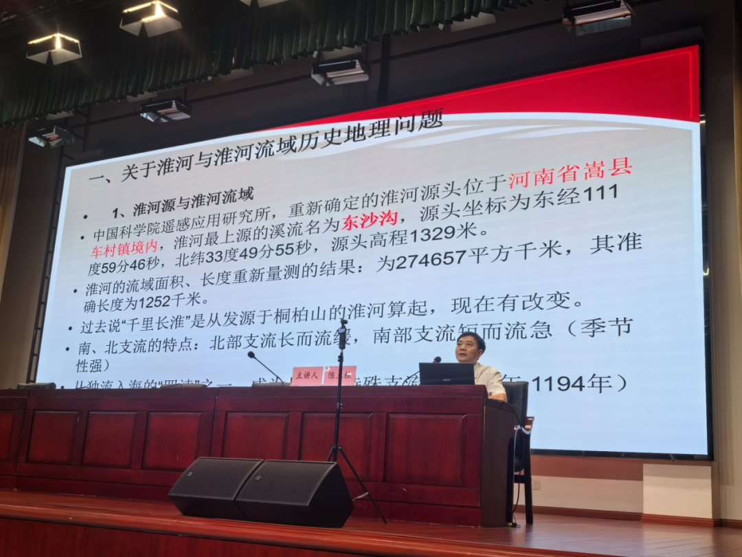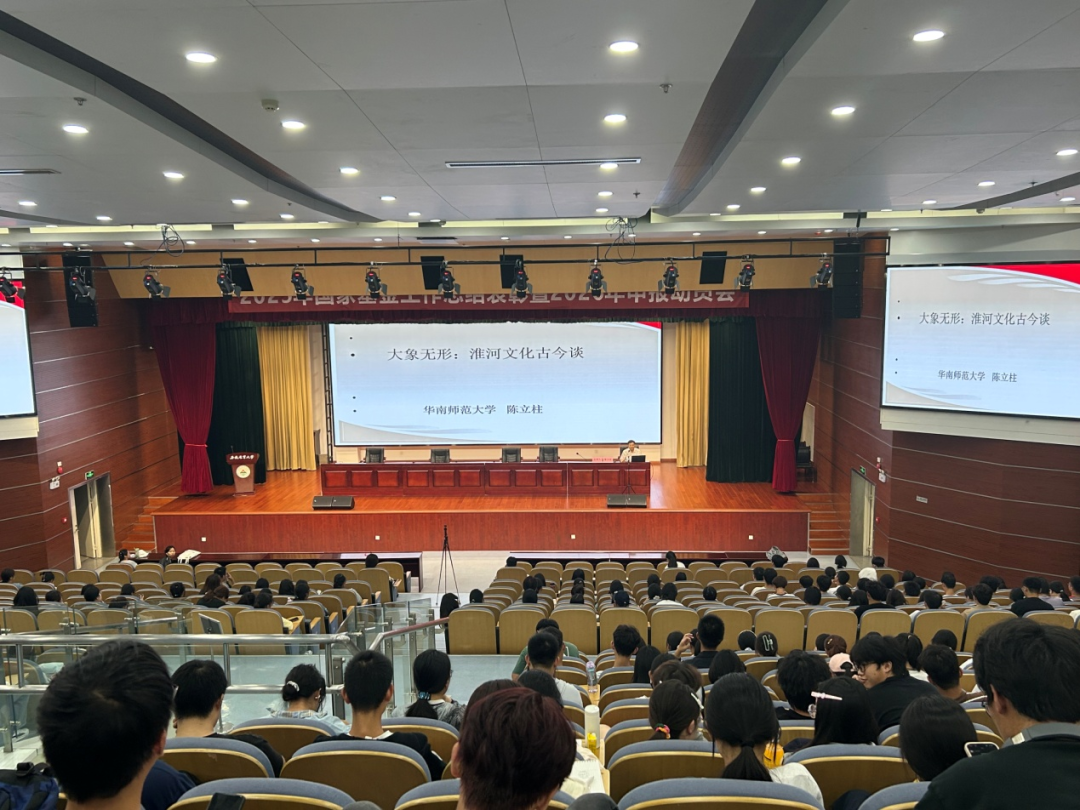 本网讯 10月10日晚,青禾讲坛2025年第3场读书报告会在图书馆第一报告厅举行,华南师范大学历史文化学院教授、博士生导师陈立柱老师应邀为我校师生作题为《大象无形——淮河文化古今谈》的读书报告,近500名师生参加报告会。