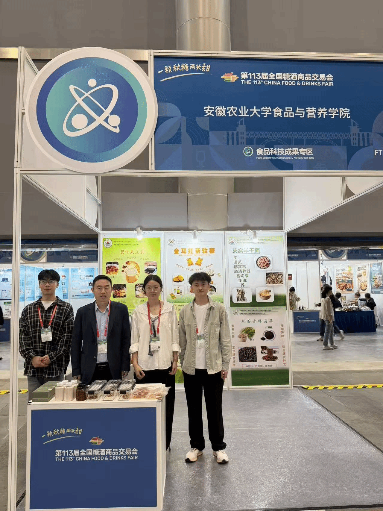 此外,在食品科技成果交流专区展会上,食品与营养学院向参观者展示了金耳红茶软糖、碧根果豆浆等科研成果的独特之处及创新工艺,并与多家食品公司进行了初步交流,探讨了未来在产品研发和市场推广上的合作机会。(文图:梁进 初审:夏晓昀 复审:刘加华 终审:曹雷)