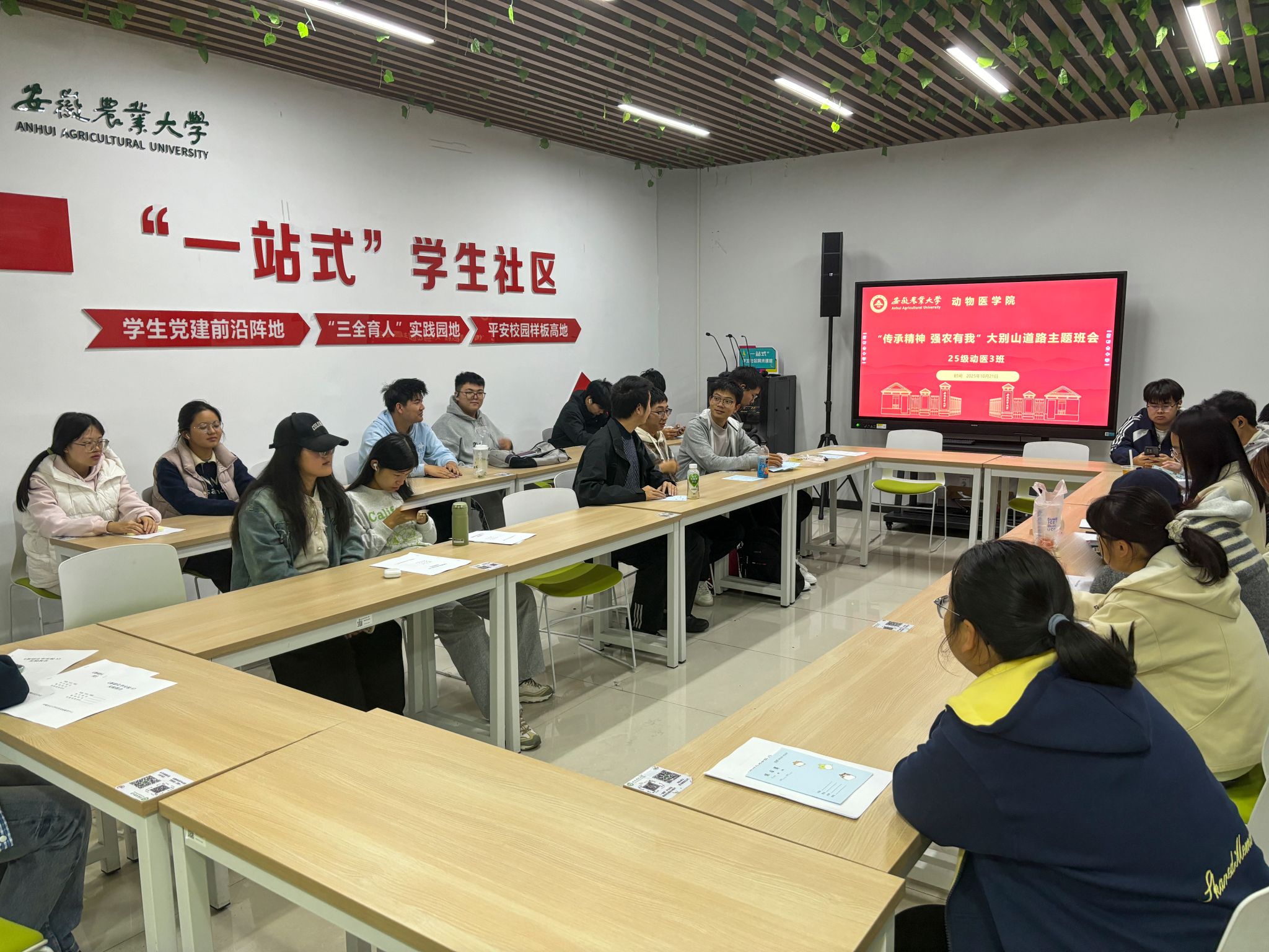 10月21日晚,学院在一站式学生社区北区举行“传承精神 强农有我”大别山道路主题班会,辅导员紧紧围绕“大别山道路”40年来的实践成果与宝贵经验展开,师生共同回顾了学校“造就人才、改良农业、救济农村”的创校初心。在讨论环节,同学们踊跃发言,结合科技馆间的所见所感,畅谈新时代农科学子的责任。大家一致认为,从“把论文写在大地上”到“把论文写在科技前沿”,变化的只是战场,不变的是初心。面对农业现代化的新要求,必须传承前辈们扎根实践的奉献精神,同时掌握科技创新的硬核本领,勇当知农爱农、强农兴农的“强农先锋”。