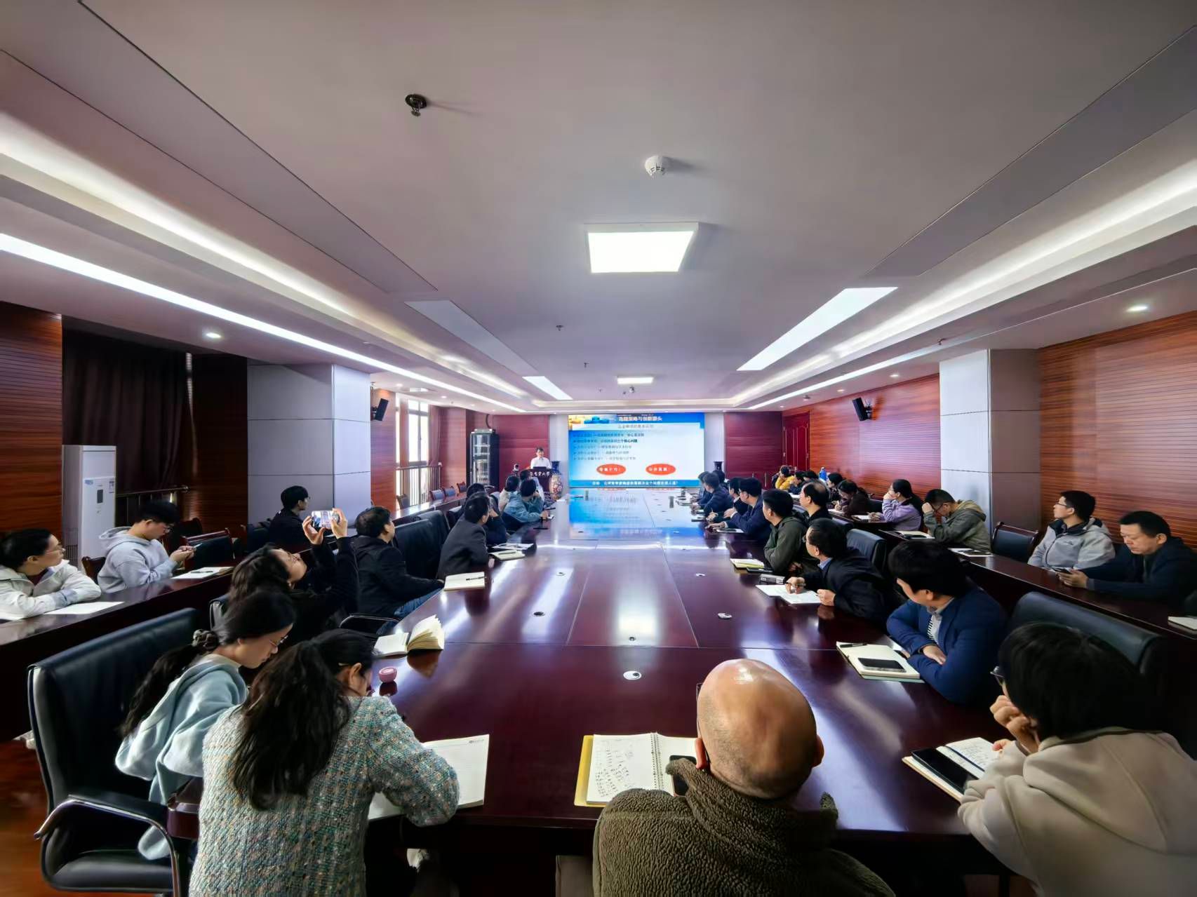 本网讯 10月23日上午,资源与环境学院组织召开2026年度国家自然科学基金申报启动会暨基金申报书写作专题辅导。南京师范大学教授胡迪作题为《国家自然科学基金申请:从选题到撰写的系统方法与实战经验》专题指导。学校科技处副处长凌英会、何撼东及教师代表近80人参加会议。会议由副院长叶新新主持。