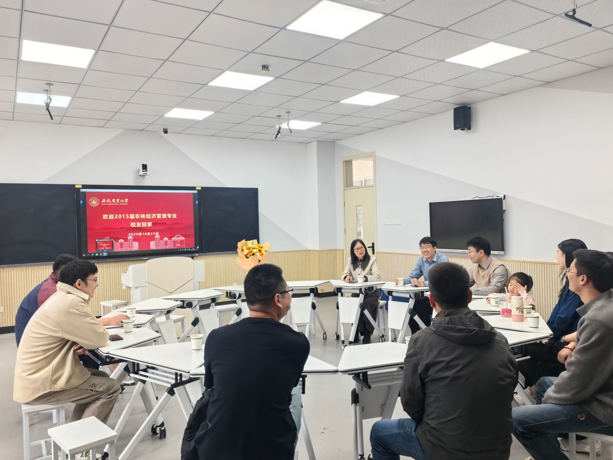 座谈会在温馨的老照片放映中拉开序幕。时任辅导员张藕香老师一句“同学们,欢迎回家”,让不少校友热泪盈眶,张老师代表学院致欢迎辞,细数十年来专业在学科建设、科研平台、人才培养等方面的突破:“从省级特色专业到国家一流专业再到一级学科博士授权点,农林经济管理专业的发展离不开校友们的关注与支持,你们永远是学院最宝贵的财富。”温情话语引发全场共鸣。