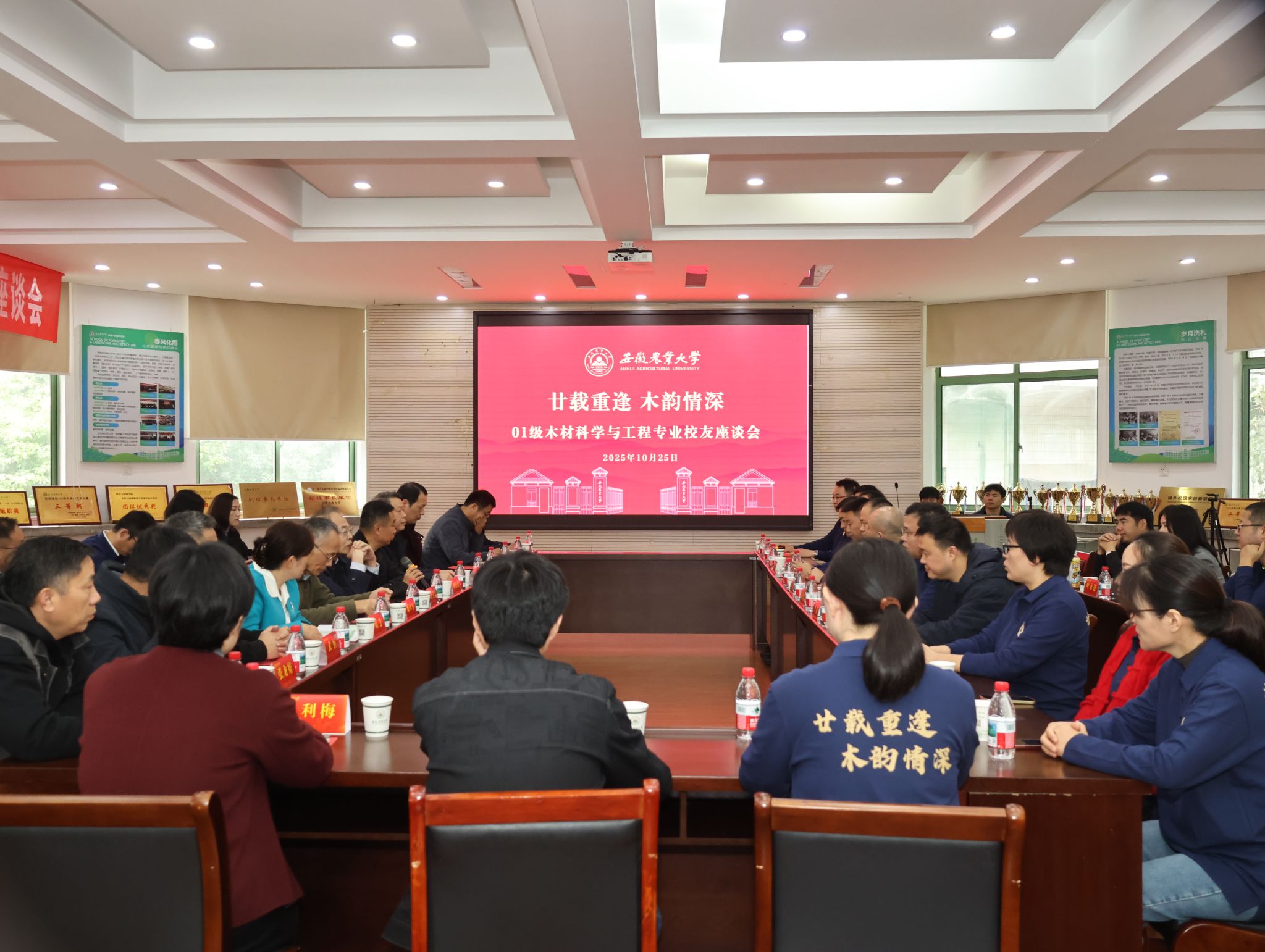 本网讯 金秋送爽,硕果盈枝,10月25日,怀揣着对母校的深切眷恋与同窗情谊,林学与园林学院2001级木材科学与工程专业近30位校友重返校园,共赴毕业20周年团聚之约。活动前,校党委副书记、校长操海群亲切会见了优秀校友詹满军。校友会办公室主任刘海涛、学院党政领导、部分退休老教师与学生代表共同参加活动。大家在温馨融洽的氛围中追忆青春岁月,共话学院发展,续写师生情缘。