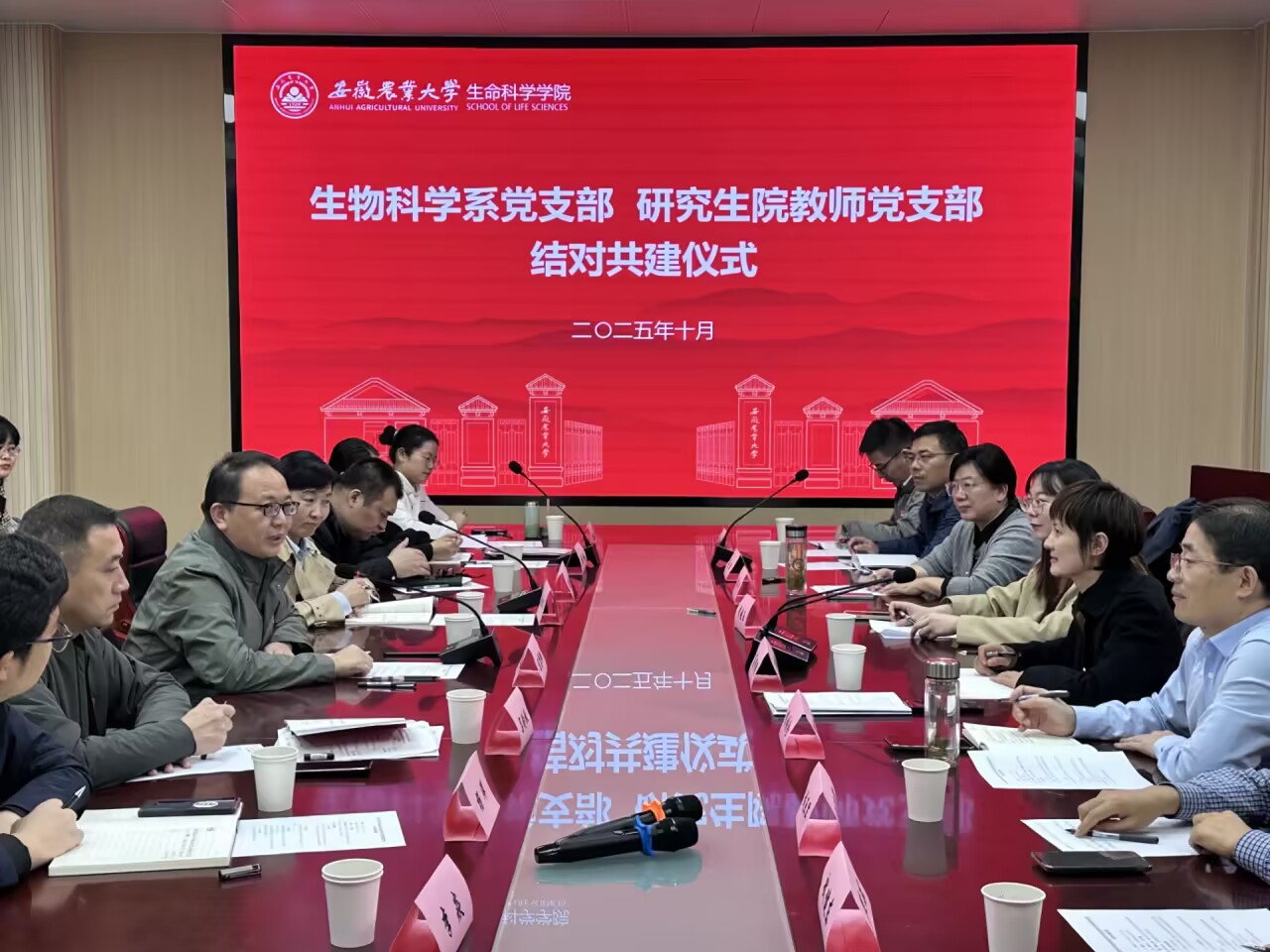 本网讯 10月29日下午,生命科学学院生物科学系党支部党员基本培训第二次集中大课学习研讨交流暨与研究生院教师党支部结对共建活动在科技楼B420举行。党委常委、副校长陈黎卿出席指导,研究生院教师党支部及生物科学系党支部成员参加活动。会议由生命科学学院党委副书记(主持工作)夏利明主持。