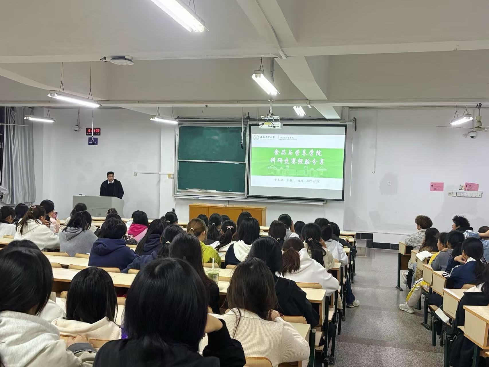 本网讯 为充分发挥优秀学子的示范引领作用,激发青年学生成长动力,10月29日晚,食品与营养学院在勤学楼203教室举行优秀学子经验分享会,学院2025级本科新生参加了此次分享会,活动由学院团委老师主持。