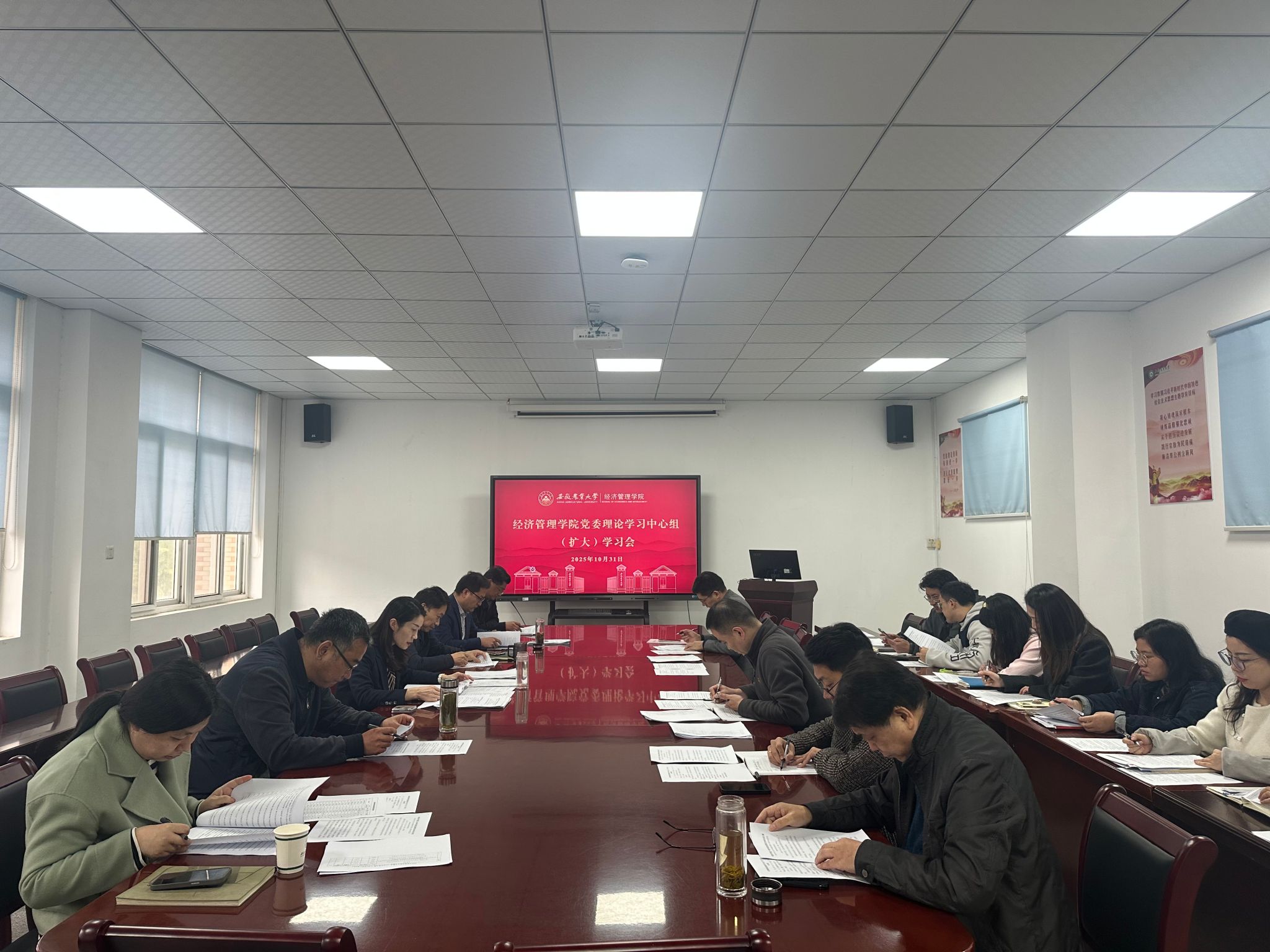 本网讯 10月31日下午,经济管理学院在经管楼304会议室召开党委理论学习中心组(扩大)学习会。学院领导班子、党委委员、党支部书记参加了本次会议。会议由学院党委书记武晓蓓主持。