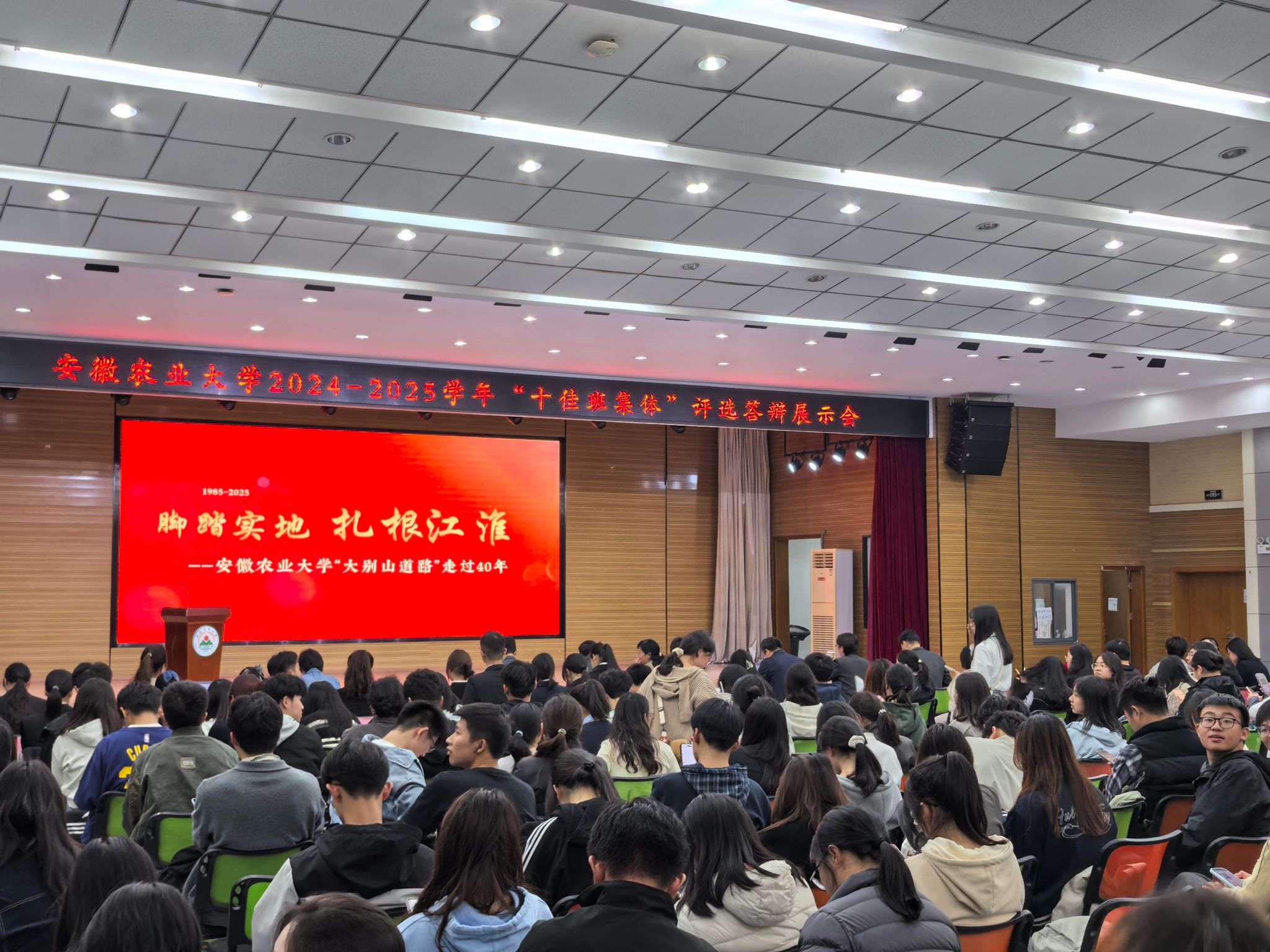 溯源铸魂,感悟精神传承。主题班会注重全员参与、全程浸润,将“大别山道路”上的感人故事真正讲进学生心里。各班组织观看了专题片《脚踏实地 扎根江淮——安徽农业大学“大别山道路”走过40年》,影像中一段段扎根深山、科技助农的奋斗画面,生动再现了安农人四十年来坚定笃行的足迹。榜样故事的融入更深化了精神感召。当听到宛志沪教授为帮助千坪村引种西洋参,连续三个月驻守深山,最终为村民打开增收之门时,现场响起热烈掌声。服务“三农”、献身“三农”的奉献精神,艰苦奋斗、无私奉献的创业精神,开拓创新、与时俱进的进取精神,如春风化雨般悄然融入青春血脉,为今后的专业学习与实践筑牢思想根基。