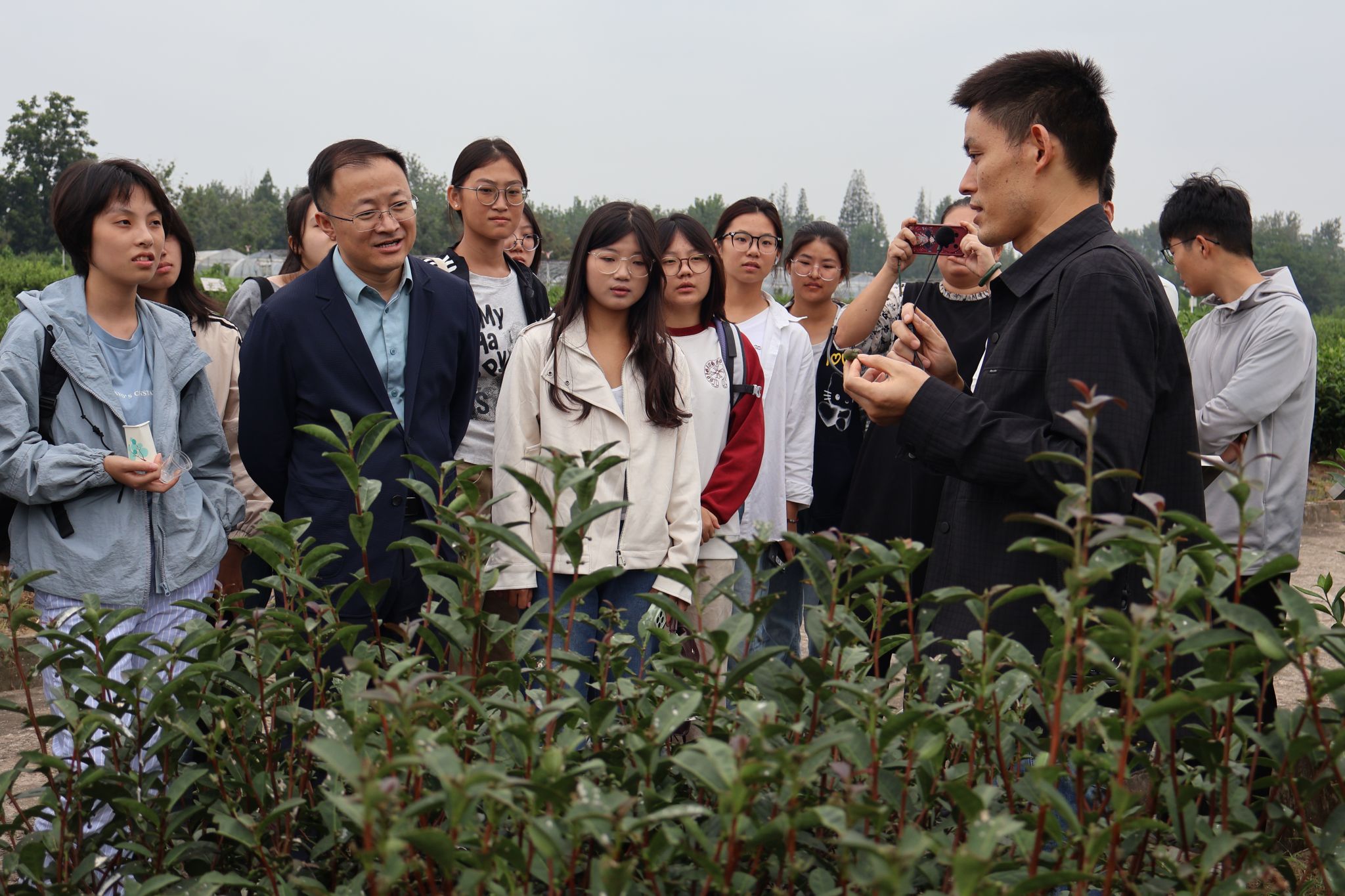 专业赋能,强化学科担当。各专业立足学科特色,将“大别山道路”精神与专业实践深度融合。农学专业以胡承霖教授小麦高产攻关等典型案例为依托,引导学生探讨生物技术赋能地方作物改良的路径;食品科学与工程专业结合蓝莓保鲜加工实战经验,解析产业链延伸带动农民增收的核心密码;经济学专业师生走进舒城桃溪现代农业产业园,实地解码“科技+订单”模式的运行逻辑。茶学、园艺等专业更将课堂搬到田间地头,学子们在皖中试验站亲手修剪茶树,在江淮园艺示范园品鉴新育瓜果,于泥土芬芳中真切体悟“科技兴农”的实践分量与学科担当。