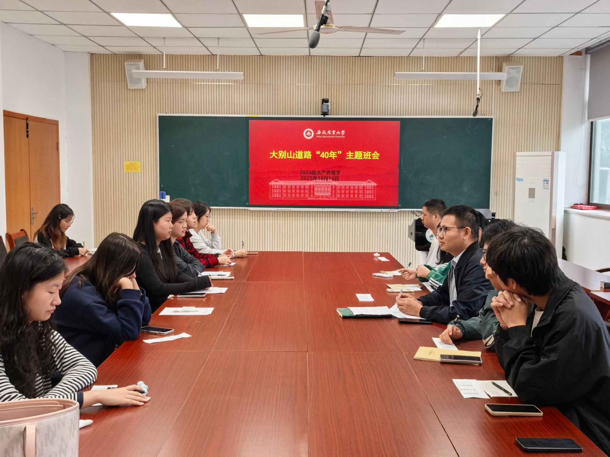 “今天的班会让我深受触动,”2025级应用统计学盛同学在班会后感慨道,“学校40年如一日服务大别山区的坚守令人动容,一代代师生把论文写在大地上的故事让人敬佩,这条道路蕴含的精神力量更催人奋进。”