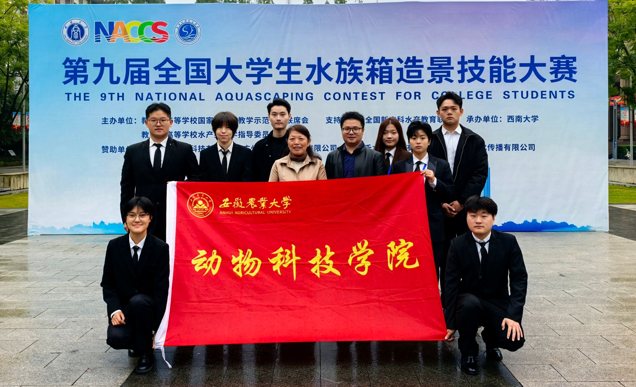 本网讯 11月3日,第九届全国大学生水族箱造景技能大赛在西南大学圆满落幕。由动物科技学院丁淑荃和张云龙等团队多位教师指导的作品荣获一等奖一项、二等奖两项,学校获评“优秀组织奖”。