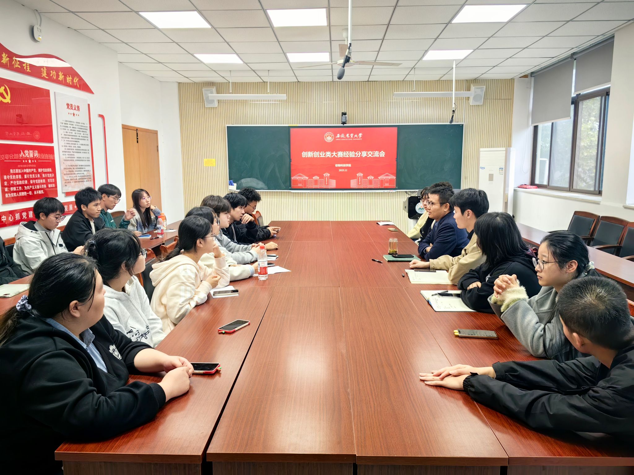 本网讯 11月7日下午,动物科技学院举办创新创业类大赛经验分享会,搭建国奖得主与学子的交流桥梁。中国创新创业大赛(2025)国赛金奖项目负责人王诗佳、第十九届“挑战杯”全国二等奖项目负责人史丽莎、答辩负责人周梦佳受邀分享,会议由学院党委副书记卢伟主持,学院副院长袁小琛、团委老师侯坤共同出席。