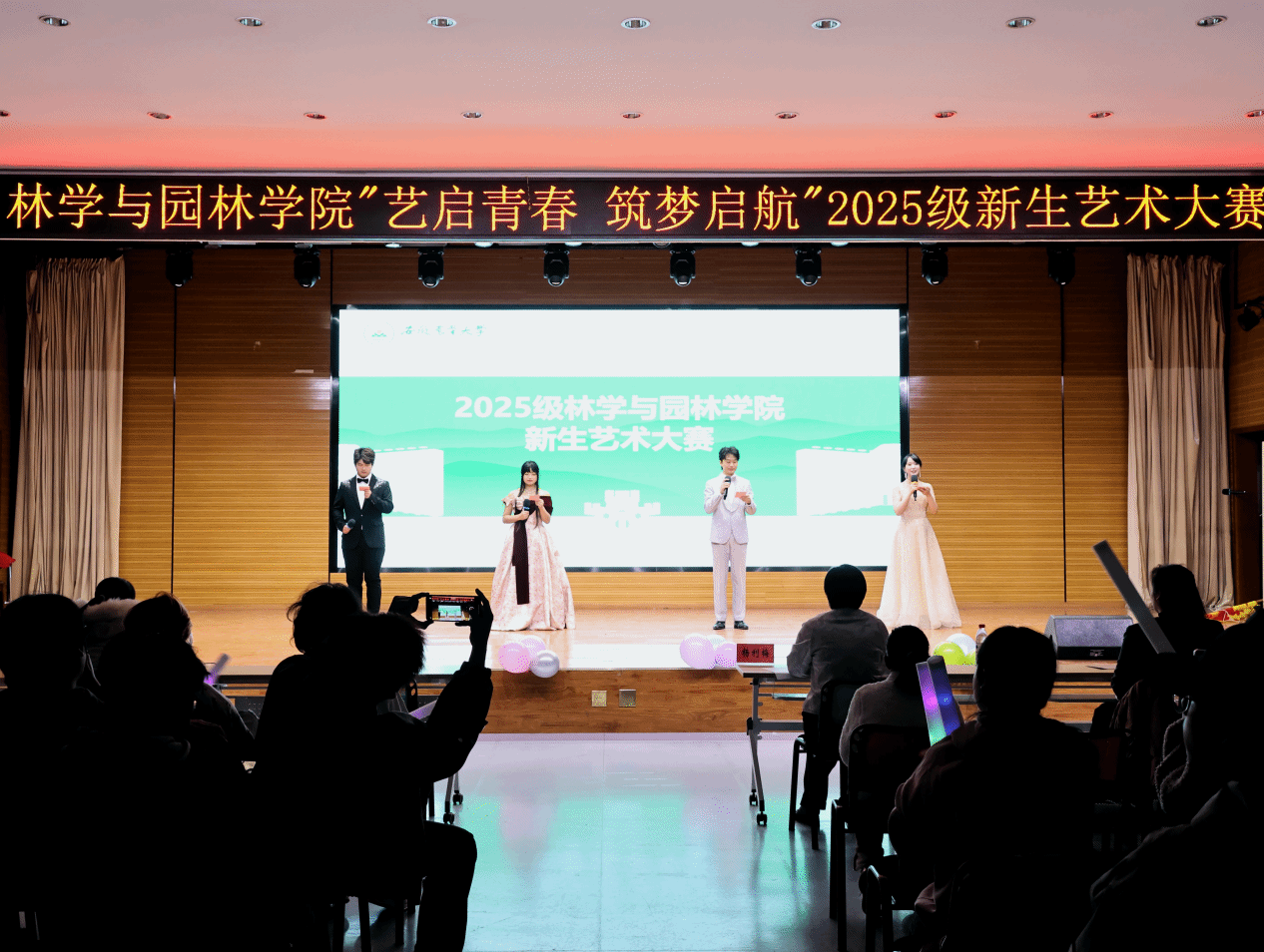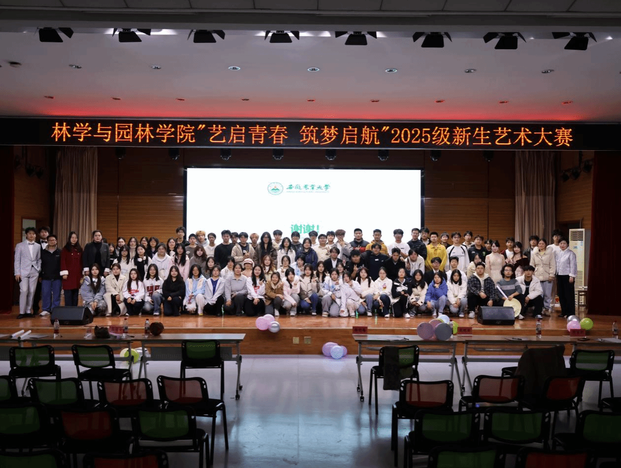 本网讯 为充分彰显学院专业特色,全面展现2025级新生班级凝聚力与艺术才华,营造积极向上的校园文化氛围,11月21日晚,林学与园林学院在欣苑四楼小礼堂隆重举办“艺启青春 筑梦启航”2025级新生艺术大赛。学院副院长杨利梅、辅导员吴倩云、殷晓雨担任比赛评委,院团委老师及2025级全体新生共同观看了这场青春盛宴。