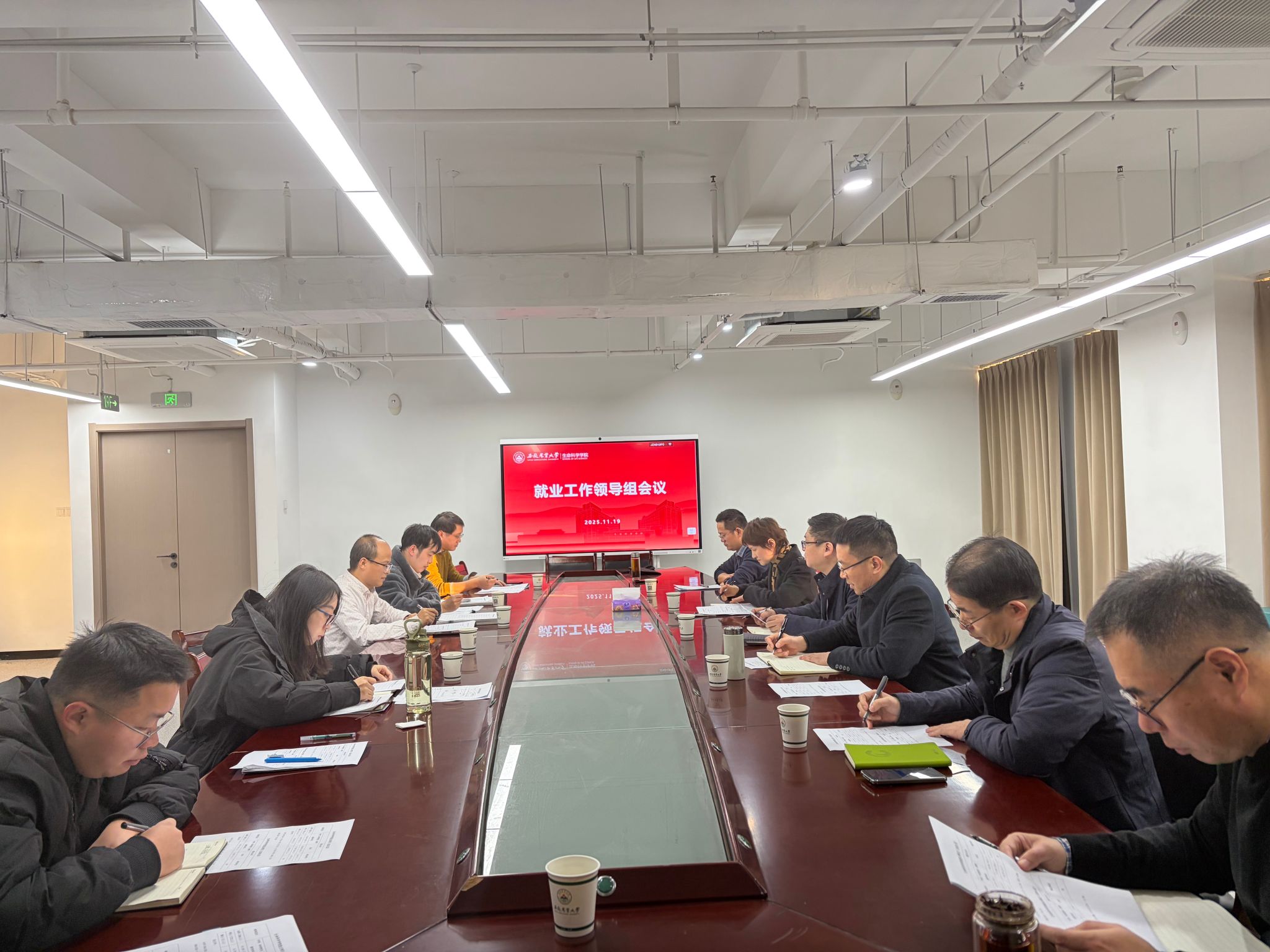 本网讯 11月19日,生命科学学院在勤业楼1907会议室召开2026届毕业生就业工作专题推进会,全面部署毕业生就业工作。学院就业工作领导小组全体成员参会。