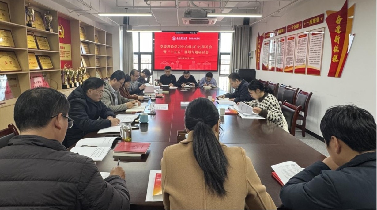 本网讯 11月25日上午,学院召开党委理论学习中心组(扩大)学习会暨“十五五”规划专题研讨会,专题学习党的二十届四中全会精神,深入研究“十五五”规划编制工作,进一步明确工作思路举措,推动全会部署落地落实。院党委书记王琼主持会议,院党委理论学习中心组成员、各党支部书记参加学习。校列席旁听工作组第五组到会指导。