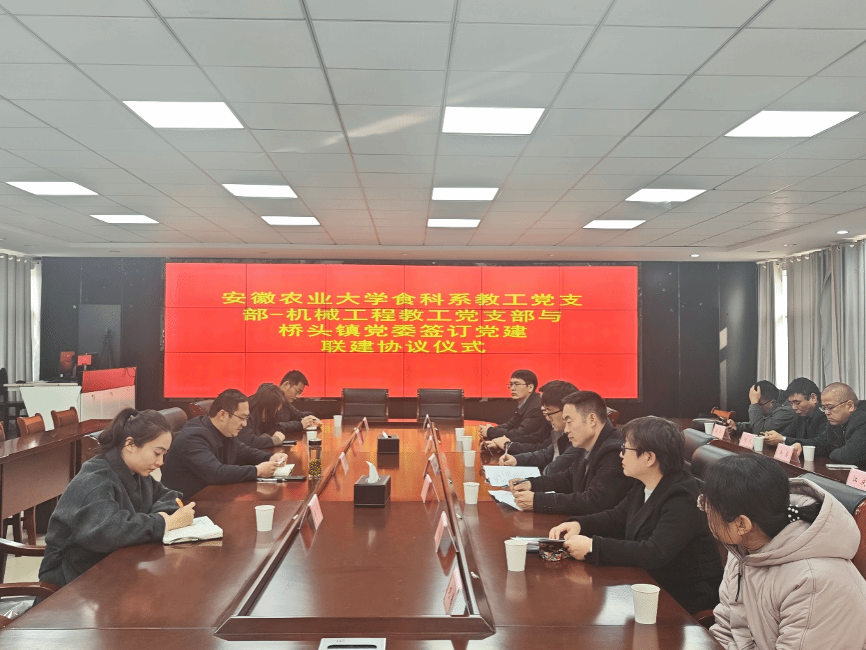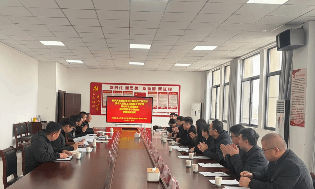 据悉,为贯彻落实学校相关文件精神,食品与营养学院积极对接皖东、皖西南两个综合试验站,选派专业教师兼任试验站副站长,深度参与试验站建设与运行管理工作,协同推动当地绿色食品产业提质增效。此次调研活动以党建共建为纽带,有效强化了校地党组织之间的互动协作,不仅签署了联建协议,更初步构建起“高校—地方—企业”三方协同的党建联动机制。未来,学院将继续以党建引领赋能产学研深度融合,切实推动试验站建设与区域食品产业协同发展,为服务地方社会经济高质量发展贡献高校智慧与力量。(文图:张海伟 初审:夏晓昀 复审:刘加华 终审:曹雷)