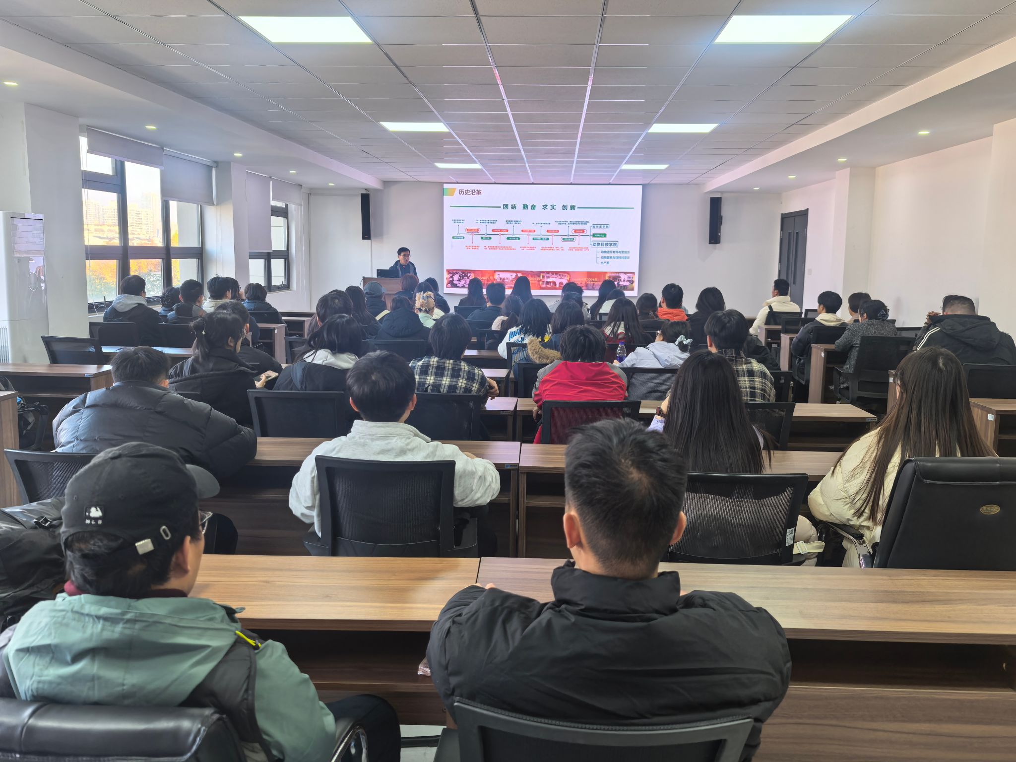 此后,师生一行前往国家级中部地区畜禽遗传资源基因库参观学习。学院教师王强军系统介绍了基因库的科研定位、运行体系及其在动物育种、疫病防控等领域的应用成果。活动中还专门安排了考研招生宣传环节,学院负责老师详细解读了学校研究生招考政策、培养特色与发展前景,并围绕专业学习、考研准备、职业规划等话题与学生进行了面对面交流。