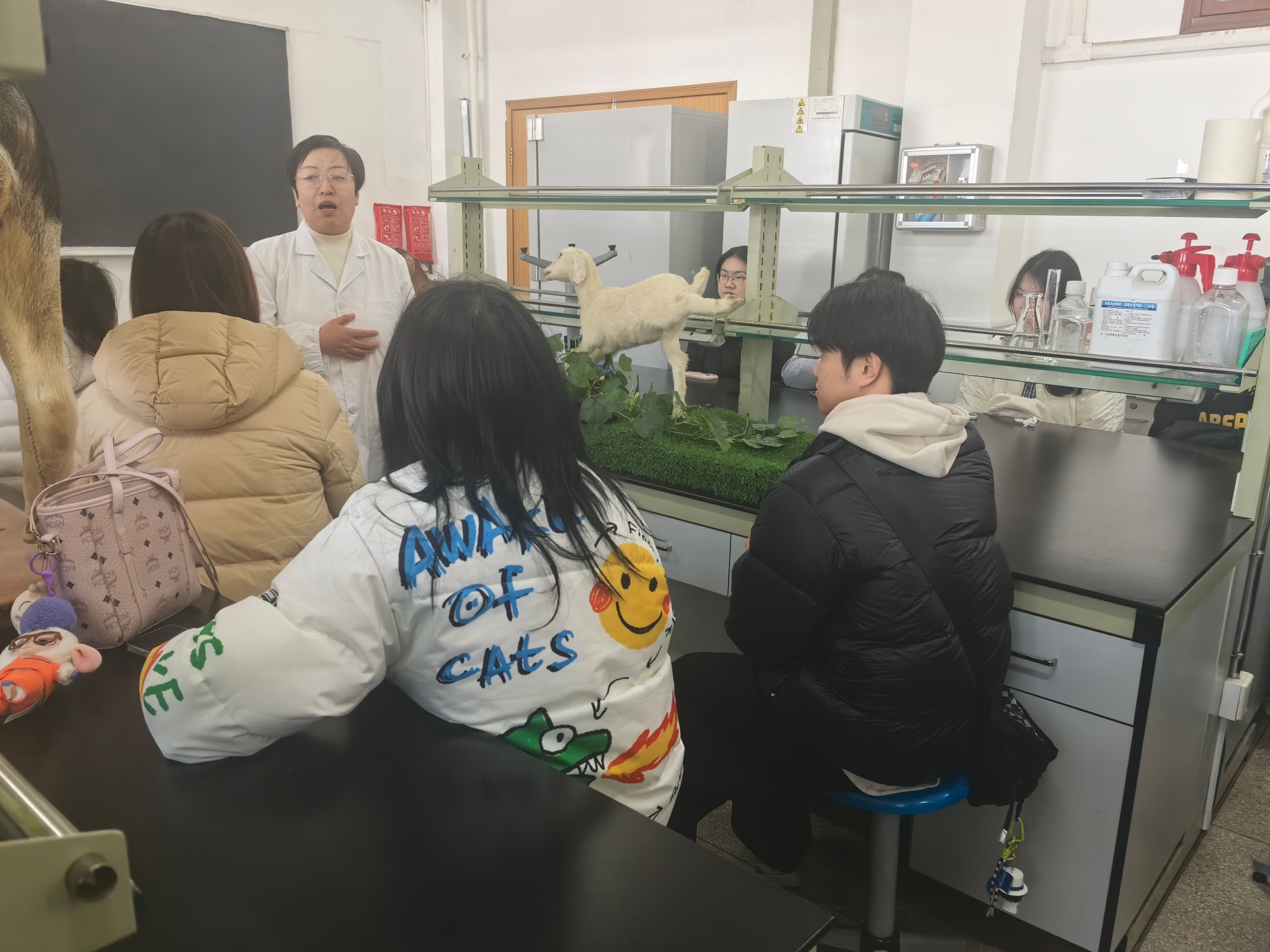 学生们首先走进动物科技学院的动物学本科实验室与动物遗传本科实验室,观摩各类动物标本,感受生物多样性之美,体会科研标本在学科教育与研究中的重要价值。随后,在张志强、任春环两位教师的指导下,通过“理论讲解与实操训练”相结合的沉浸式教学,学生们进一步巩固了专业知识,提升了实践技能。