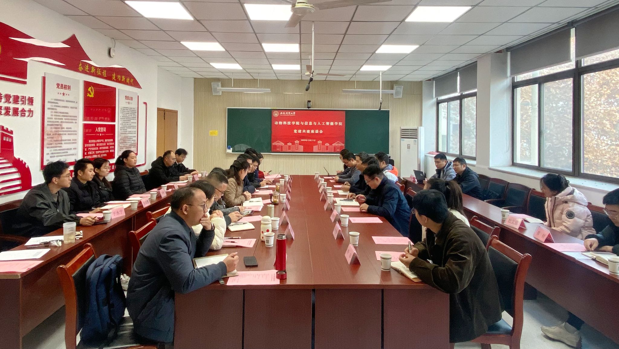 本网讯 为深入贯彻落实党的二十届四中全会精神,坚持创新驱动新质生产力发展,12月11日上午,动物科技学院与信息与人工智能学院联合举办“党建汇智启新程 学科融合谱新篇”学科融合研讨会暨党建共建座谈会。信智学院党委书记吴辰华,学院副院长张成堂、岳振宇,科技处副处长饶元及教师代表一行来院交流。动物科技学院党委书记沈兆梅、副院长(主持工作)凌英会、副院长袁小琛及教师代表参加座谈会。