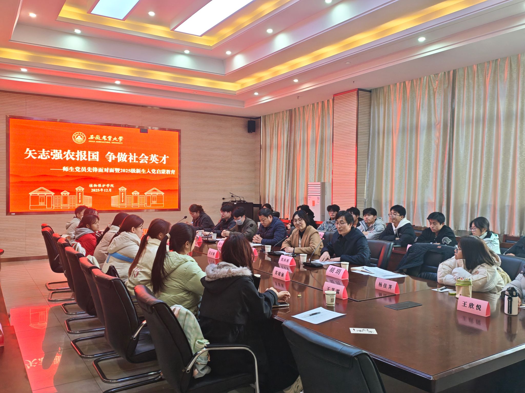 本网讯 近日,植物保护学院面向2025级10个本科新生班级,组织开展以“矢志强农报国 争做社会英才”为主题的“大思政课”暨新生入党启蒙教育。校党委副书记、校长操海群到场指导,机关党委、党委组织部、党委巡察办等5个校直机关部门负责人、学院领导班子与新生共同参与,围绕初心、农情与未来展开交流,为同学们呈现了一堂思想有深度、视野有广度、传递青春温度的思政课。