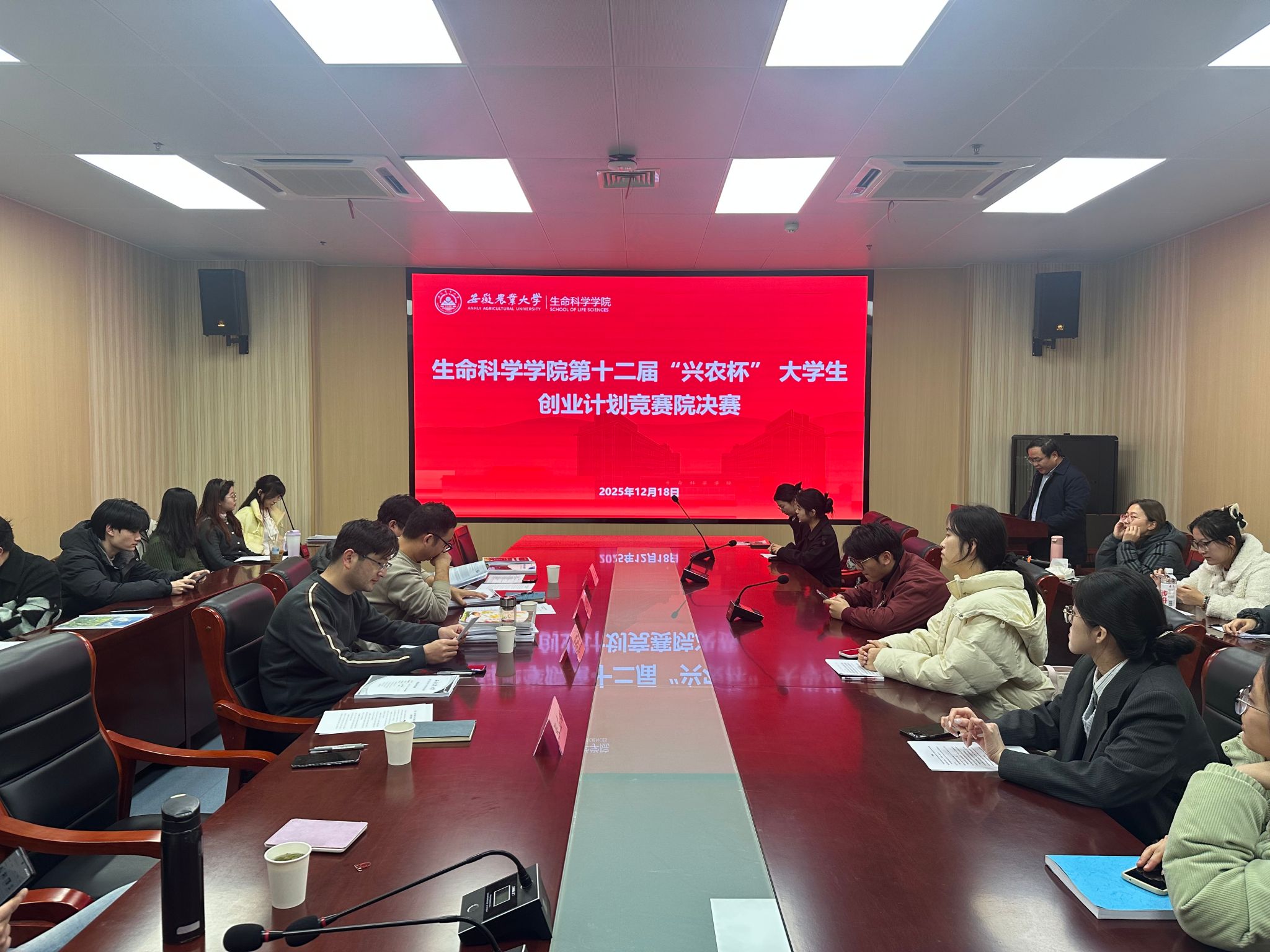 本网讯 12月18日下午,生命科学学院在生物科技楼B420举办第十二届“兴农杯”大学生创业计划院决赛。决赛邀请工学院教授王韦韦、材料与化学学院教授叶盛、创新创业学院创新创业教育科科长韩天才担任评委。会议由学院副院长张应烙主持。