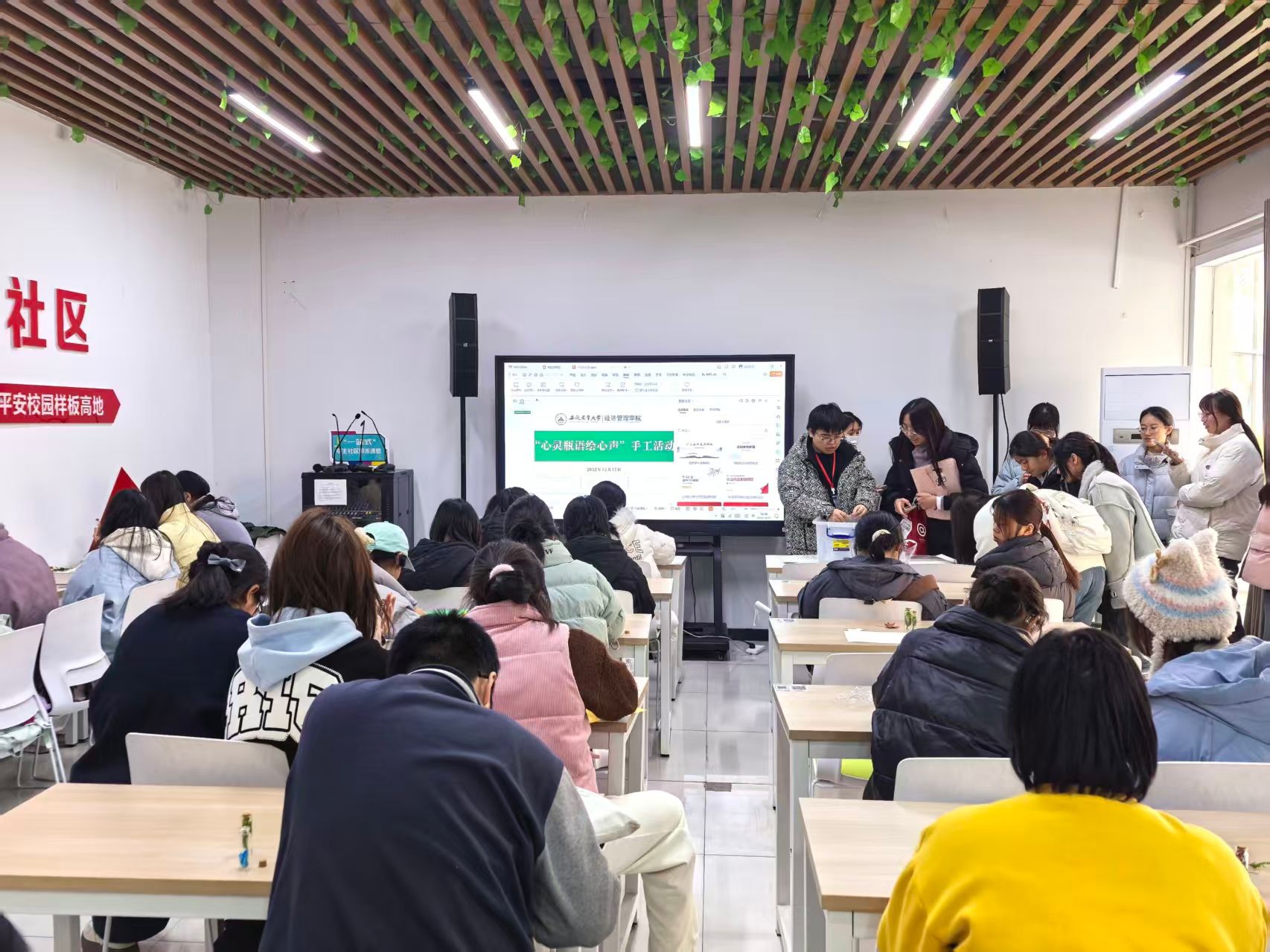 12月17日下午,“心灵瓶语绘心声”手工活动在“一站式”学生社区北区开展。活动以玻璃瓶、颜料、彩绳等为创作材料,引导同学们通过手绘、装饰等方式,将内心的情绪与期许寄托于小小的玻璃瓶中。在心理组的引导下,同学们一边专注创作,一边分享彼此的生活感悟与成长烦恼,在动手实践的过程中舒缓心理压力,收获心灵慰藉。一件件创意十足的手工作品,不仅展现了同学们的奇思妙想,更成为大家传递心声、治愈心灵的载体。