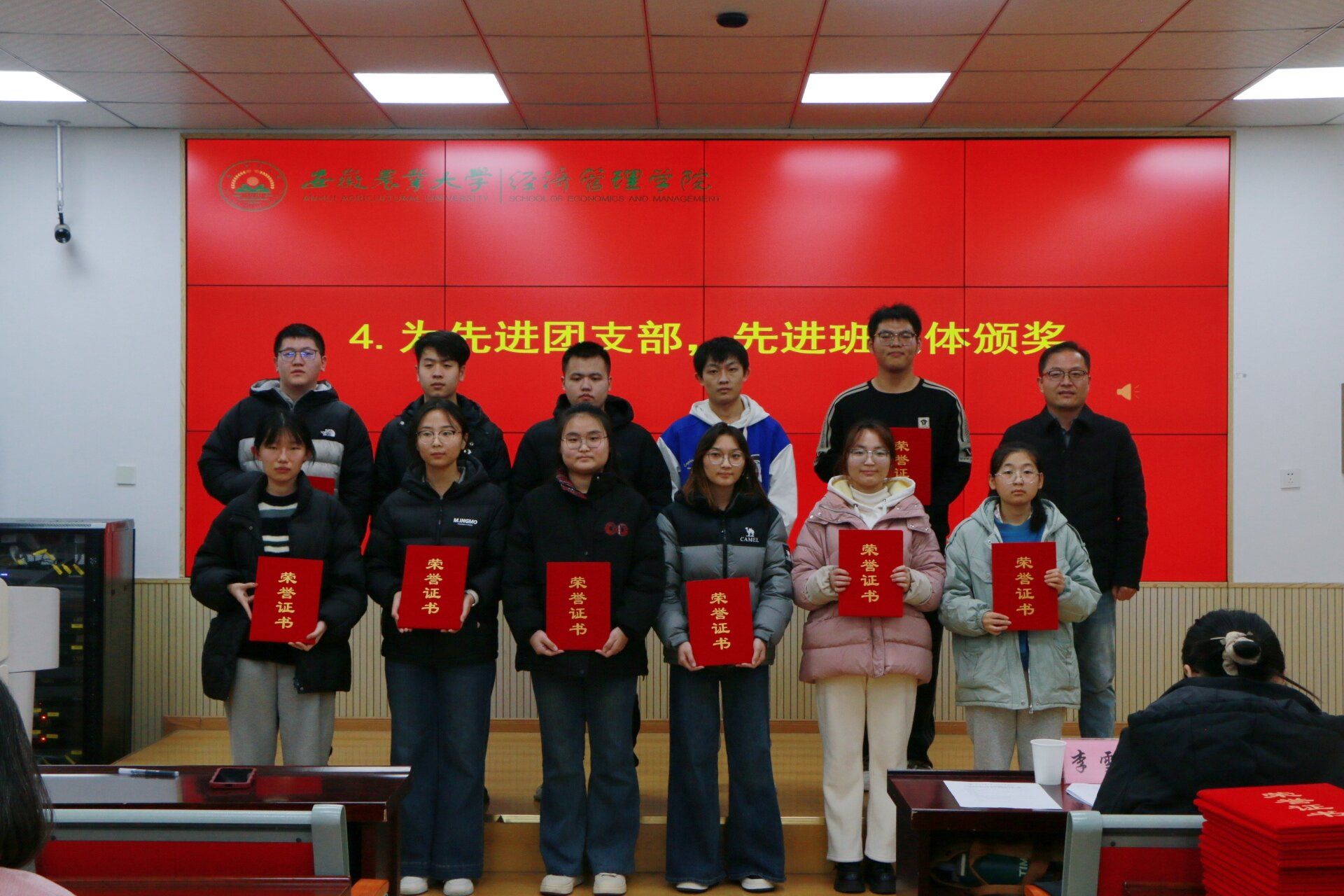 本网讯 12月23日晚,经济管理学院在经管楼103举办第四届网络文化节暨先进表彰大会。学院党委副书记、纪委书记周涛出席活动,学院专职辅导员、第60届田径运动会运动员、本科生班级学生代表共百余人参加了活动。