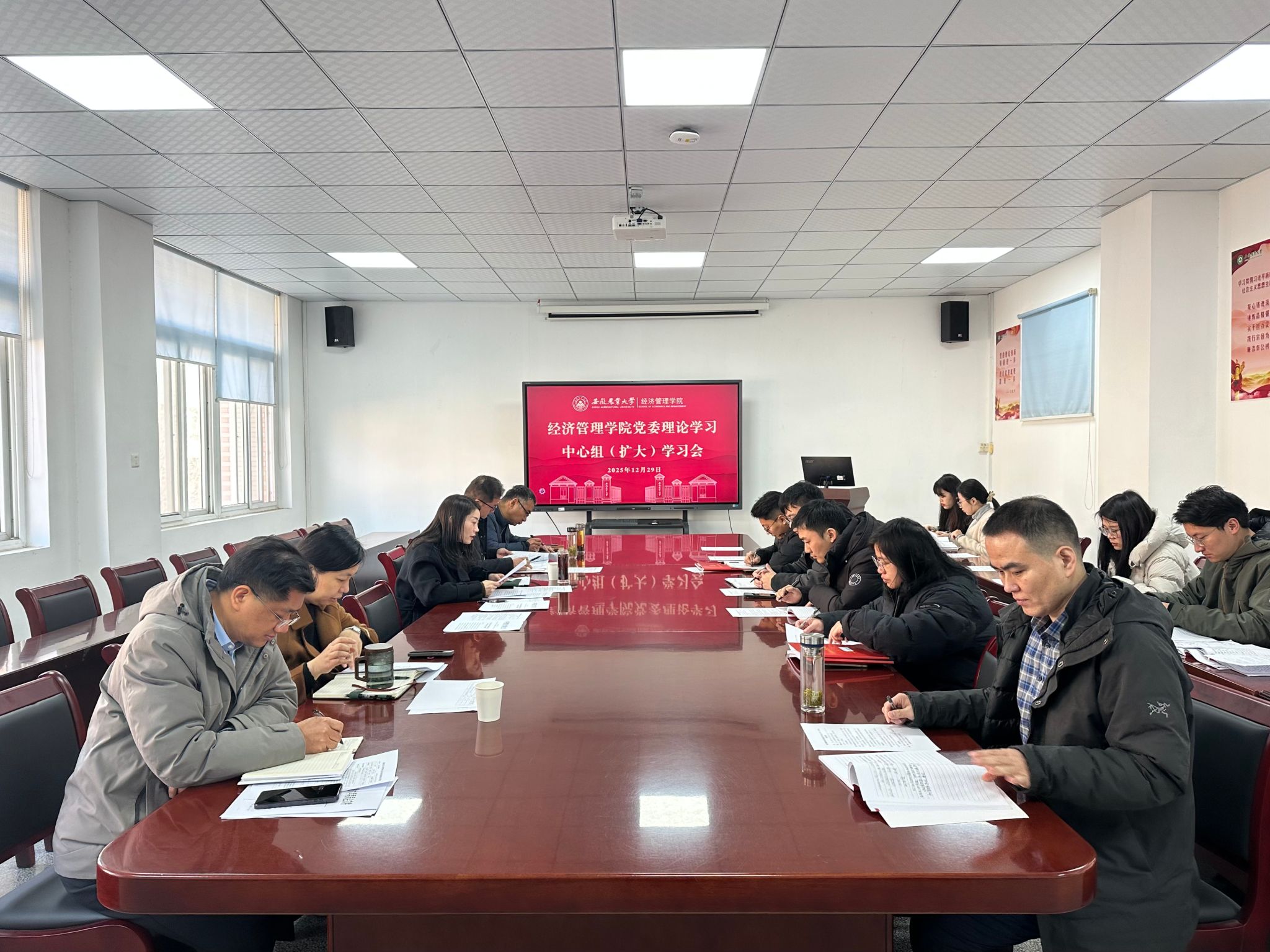 本网讯 12月29日上午,经济管理学院在经管楼304会议室召开党委理论学习中心组(扩大)学习会。学院领导班子、党委委员、党支部书记参加会议。会议由院党委书记武晓蓓主持。