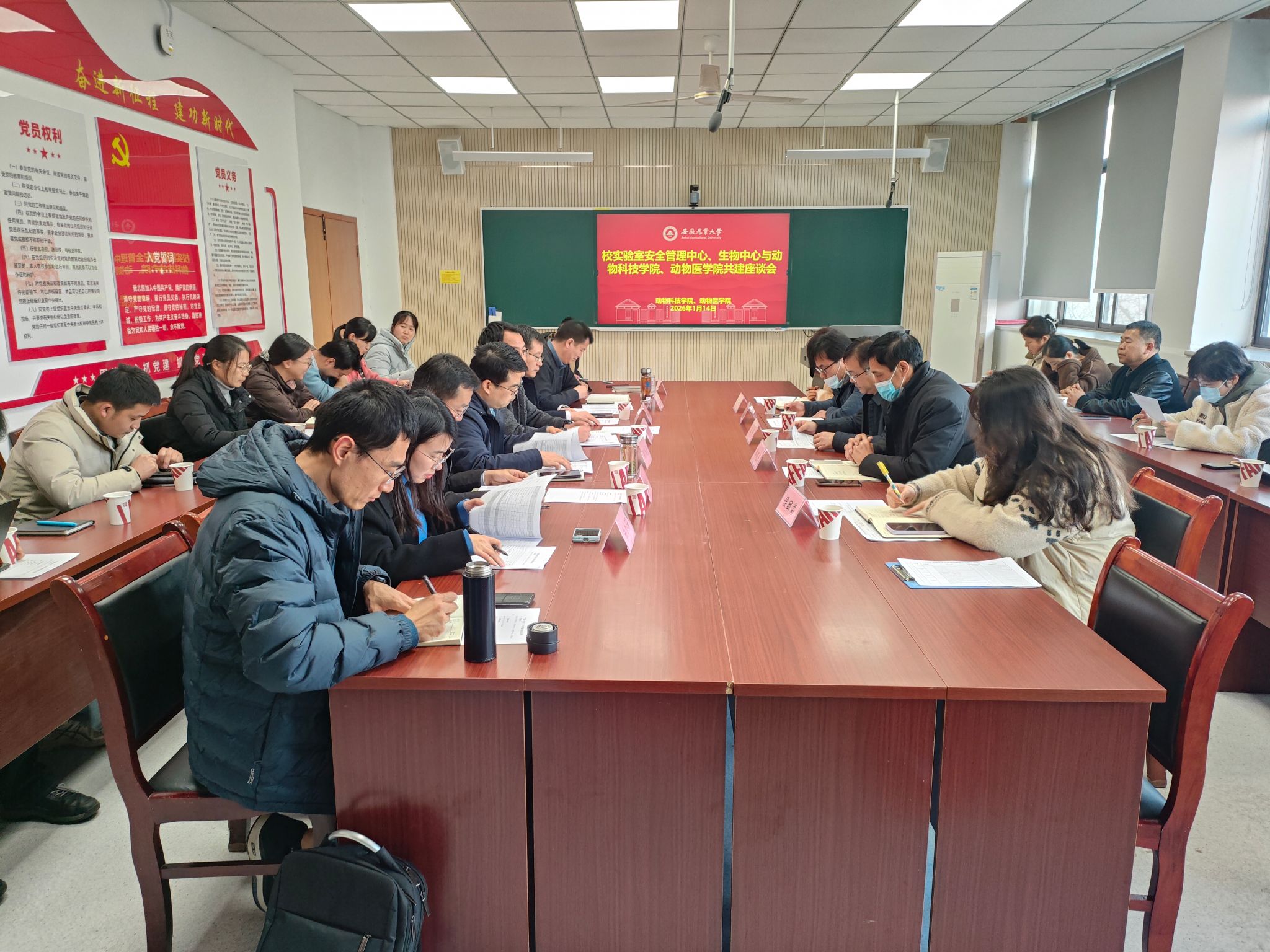 本网讯 为进一步筑牢校园实验室安全防线,强化跨部门协同联动机制,提升动物类、生物类实验室安全管理规范化水平,1月14日下午,校实验室安全管理中心、生物中心与动物科技学院、动物医学院联合召开实验室安全共建座谈会。实验室安全管理中心、生物技术中心主任王涛、副主任郭晓东及科室相关人员、双方学院党政领导班子成员、系部主任、各实验室安全责任人、实验室安全联络员等参加会议。
