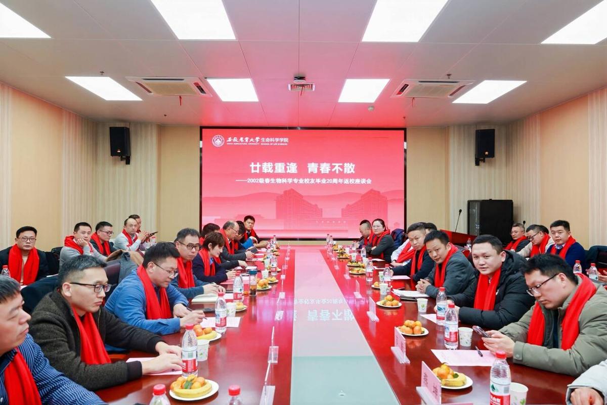 学院党委副书记(主持工作)夏利明对校友表示热烈欢迎,由衷感谢各位校友长期以来对学校学院的关注支持。她表示,学院将进一步完善校友联络机制,搭建生物科学专业校友交流合作的常态化平台。院长薛挺介绍了学院近年来在人才培养、专业建设、学科发展、科研合作等方面的情况。他强调,学院将进一步促进校友资源与学院发展需求精准对接,实现校友成就、学院发展、社会贡献的良性互动。教师代表与校友们围坐畅谈,气氛温馨而热烈。校友们依次分享了各自二十年来的成长历程与人生感悟,表达了对母校和恩师的深切感激。校友们表示,正是在母校的培养下,形成了专业严谨的学习精神和求真务实的工作作风,才能在各自的专业领域取得一定的成就。校友们为学院送上诚挚祝福,期待学院未来取得更大突破,培育更多强农先锋、社会英才。