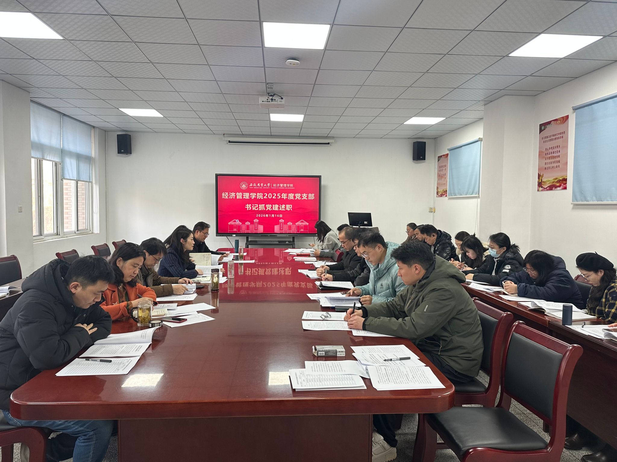本网讯 1月16日下午,经济管理学院2025年度党支部书记抓党建述职会在经管楼304会议室召开。学院领导班子、党委委员、全体党支部书记、党支部委员、师生代表参加了本次会议。会议由院党委书记武晓蓓主持。