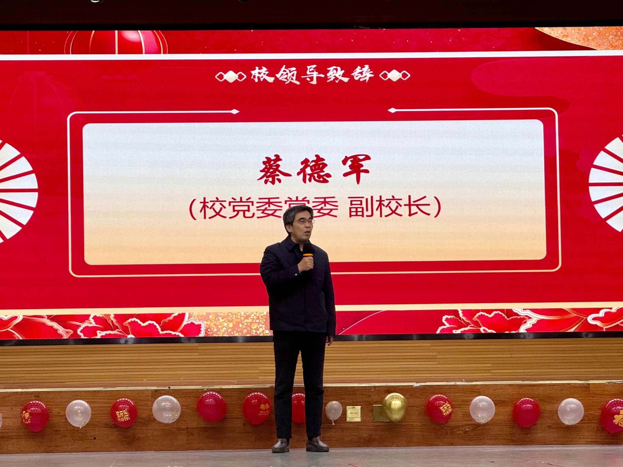 本网讯 岁序更替,华章日新。1月19日下午,动物科技学院在欣苑小礼堂举行“骏马跃动科 同心启新程”2026年新春联欢会。校党委常委、副校长蔡德军出席活动并致辞,学院老领导、校友代表及全体教职工欢聚一堂,共迎新春、共叙情谊。