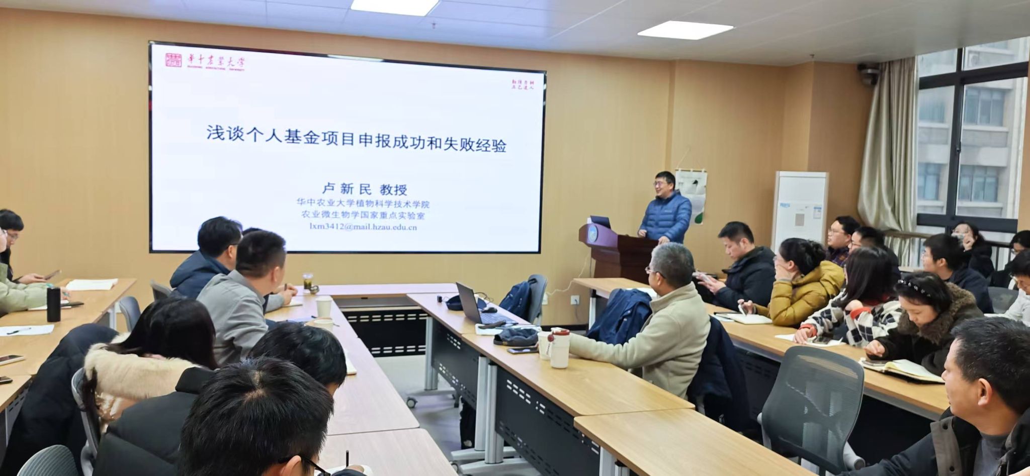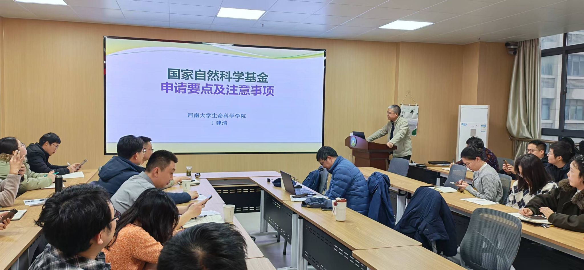 本网讯 1月26日下午,资源与环境学院在中西部综合楼716会议室举行举办“绿洲”生态环境高峰论坛系列报告会暨国家自然科学基金辅导报告会,河南大学丁建清教授和华中农业大学卢新民教授应邀参会,会议由科技处副处长何撼东主持,学院40余名教师及博士后参会。