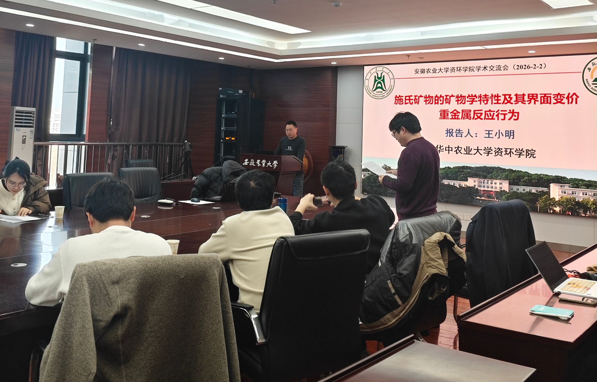 本网讯 2月2日下午,华中农业大学王小明副教授应邀来资源与环境学院开展学术交流,作题为“施氏矿物的矿物学特性及其界面变价重金属反应行为”的报告。报告会由学院副院长叶新新主持,学院20余名师生参加报告会。