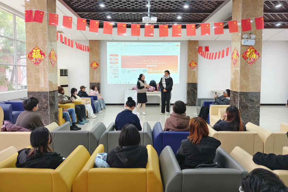 活动现场,中外学生交流协会指导老师介绍了社团宗旨与发展历程,We Are Family国际志愿服务队代表及团队成员分享了志愿经历,展现了国际志愿服务中跨越国界的善意与坚守,生动诠释了雷锋精神的时代内涵。中外学生认真聆听、积极交流,在互动中深化了对志愿精神的理解,也凝聚了中外同心、共传善意的力量。