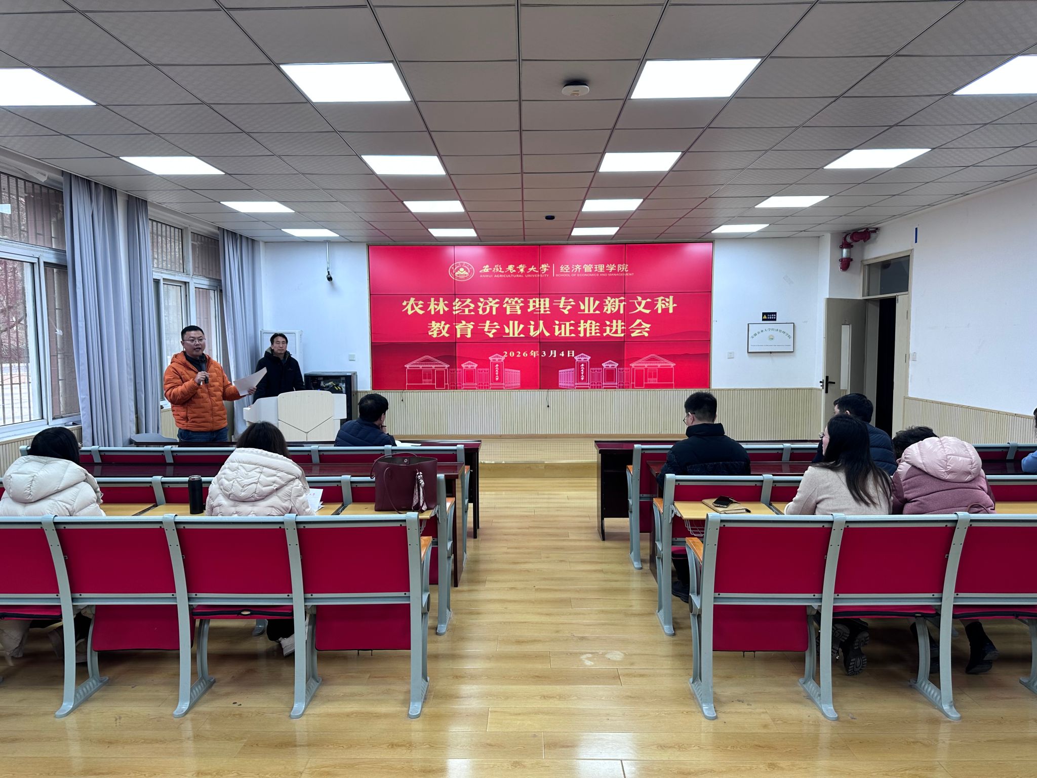 本网讯 为扎实推进2026年农林经济管理专业新文科认证工作,3月4日,经济管理学院在经管楼103会议室召开农林经济管理新文科教育专业认证推进会。学院院长杨波、会计学专业负责人孟枫平以及农林经济管理系全体教师参加会议。