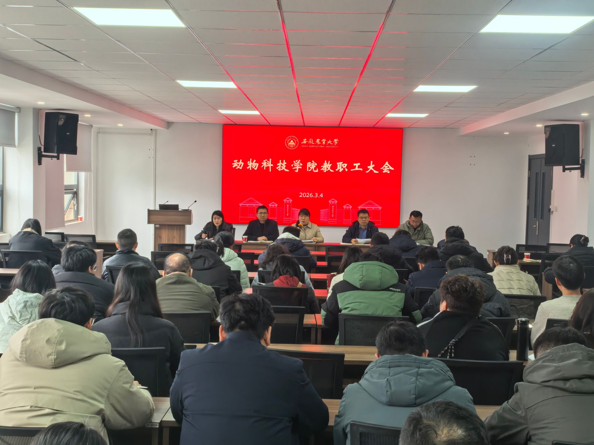 本网讯 3月4日下午,动物科技学院在国家(中部地区)畜禽遗传资源基因库316会议室召开春季学期全体教职工大会,全面部署新学期重点工作。学院领导班子成员及全体教职工参加会议,会议由学院党委书记沈兆梅主持。