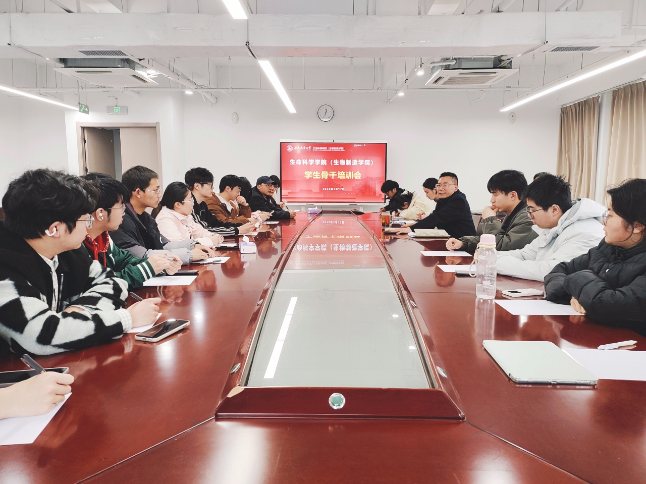 本网讯 3月17日中午,生命科学学院(生物制造学院)在勤业楼1907会议室召开学生骨干培训会。学院副处级组织员程玉磊、全体辅导员与学生骨干参加培训。