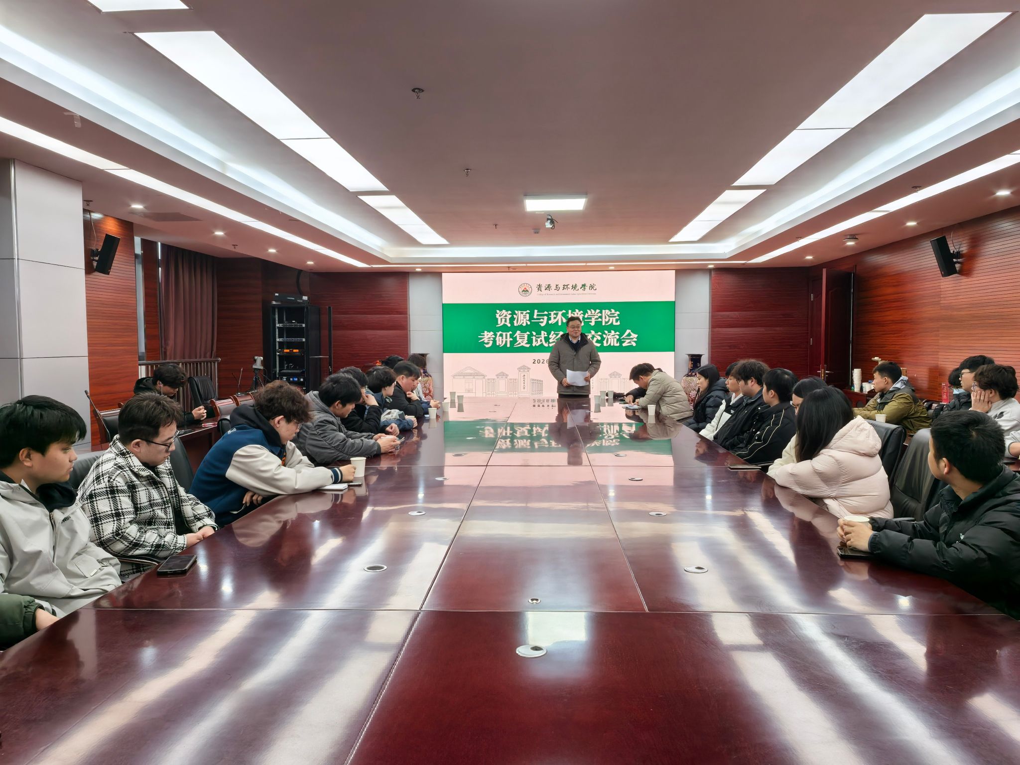 活动中,张震向备战复试的学子送上鼓励与祝福,结合资环学科考研形势与学院特色,叮嘱大家夯实专业基础、调整心态、从容应考,同时表明学院会全程做好备考保障,做学子坚实后盾,勉励大家紧抓关键阶段全力冲刺,成功考取心仪高校。