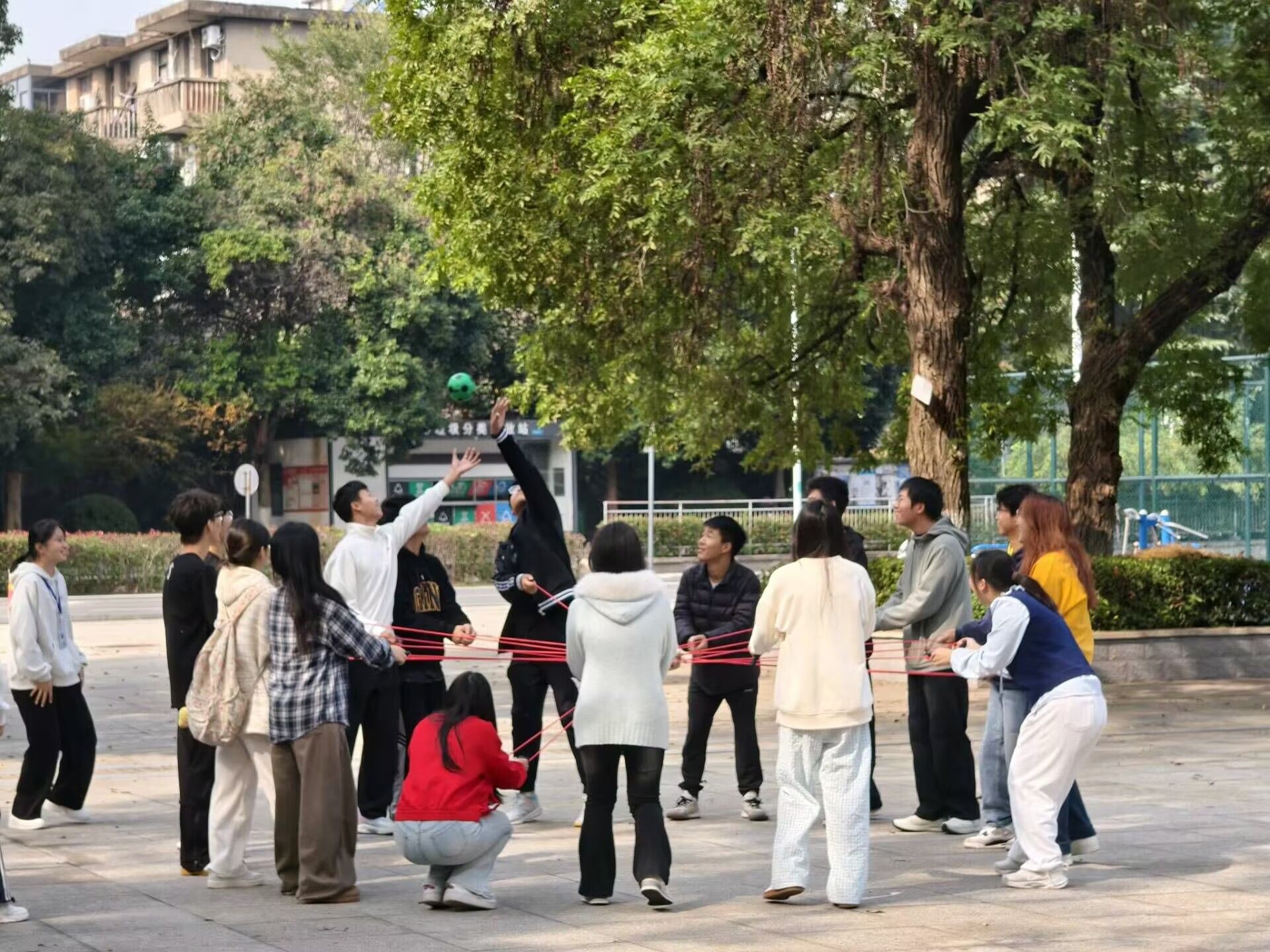 “身心共愈,赋能成长”户外心理素质拓展活动在校园有序开展,同学们以班级为单位,依次开展“沉船破冰”“团队拼图”“默契接力”等趣味互动项目。活动过程中,同学们主动协作,不仅提升了团队凝聚力和协作能力,更增强了大家的心理韧性,引导学子以更积极的心态面对成长中的挑战。