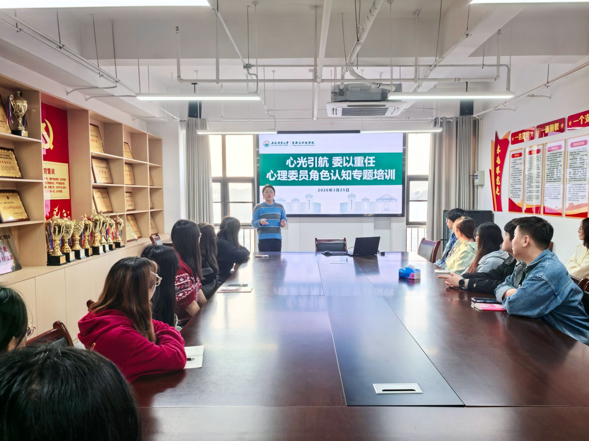 学院以“心光引航,委以重任”为主题,开展心理委员角色认知专题培训,切实发挥心理委员在班级心理健康工作中的“朋辈使者”作用。培训围绕心理委员的角色认知、核心职责定位、日常工作技巧等内容展开详细讲解,重点指导心理委员掌握心理预警识别、朋辈陪伴沟通、异常信息上报等实用技能,明确工作边界与责任分工,有效破解工作中的难点困惑,为班级心理健康工作有序开展奠定坚实基础。