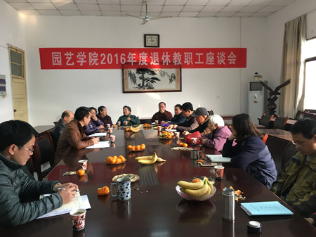 本网讯 1月3日下午,园艺学院在院会议室召开退休教职工座谈会。院党政领导、党委委员、办公室全体成员与退休老师欢聚一堂,共话校院工作。